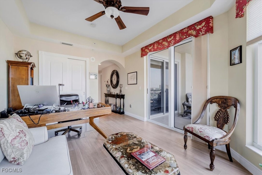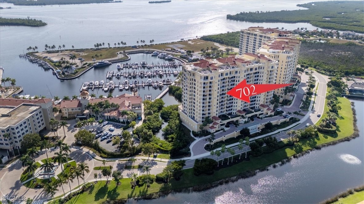 Amazing Views all the way to the Sanibel Bridge & the Gulf of Mexico from this 7th Floor unit in the exclusive Tarpon Landings resort style accommodations, each unit has a private elevator, the views looking out over the marina & the Caloosahatchee River are one of a kind, this property offers an open floor plan with 4 bedrooms, & 3.5 baths, all new gray plank title flooring in all the bedrooms & on the bedroom balconies has been installed recently, 5 layer security comes with this community, 2 car garage, private pool area, with recreation room, weight room & lockers, outside BBQ grills, marina boat slips available per availability, the 5 Star Westin Hotel is next door with many shops & restaurants to add to the exclusive life style this community offers, make sure you see this property