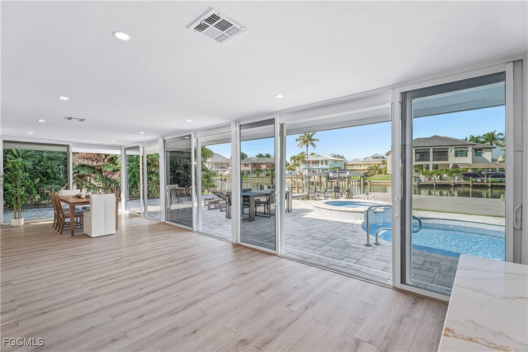 The Pinnacle of Modern Waterfront Design: Designed for those who appreciate contemporary luxury and seamless indoor-outdoor living, this home offers an exceptional opportunity to command your own piece of paradise on Fort Myers Beach. Experience the art of Florida living in this stunning, fully remodeled residence in the highly desirable deep-water enclave of Siesta Isles. The entire main level is enveloped in light, thanks to dramatic, floor-to-ceiling panoramic windows that frame breathtaking, unobstructed views of the canal, private pool, and spa. This architectural feature creates a truly open and sophisticated space where the shimmering water views become a constant, calming backdrop for everyday life and grand entertaining. The sleek kitchen acts as the home's centerpiece, boasting high-end appliances and a generous island designed for gourmet prep and social gathering. The dedication to quality extends to the private quarters, where the newly remodeled bathrooms feature clean lines and luxurious walk-in showers, offering a tranquil, spa-like escape. The exterior rivals the interior in elegance and function. Enjoy year-round warmth on the spacious paver patio surrounding the private pool and spa. Crucially, for the avid boater, this property delivers a competitive edge: an extraordinarily large private dock, perfectly situated on a deep-water access canal. This exceptional amenity easily accommodates large vessels and provides rapid access to the Gulf of Mexico, positioning you for endless aquatic adventure. With no HOA and an unparalleled location just moments from the beaches, dining, and vibrant culture of Fort Myers Beach, this is where your coastal legacy begins.