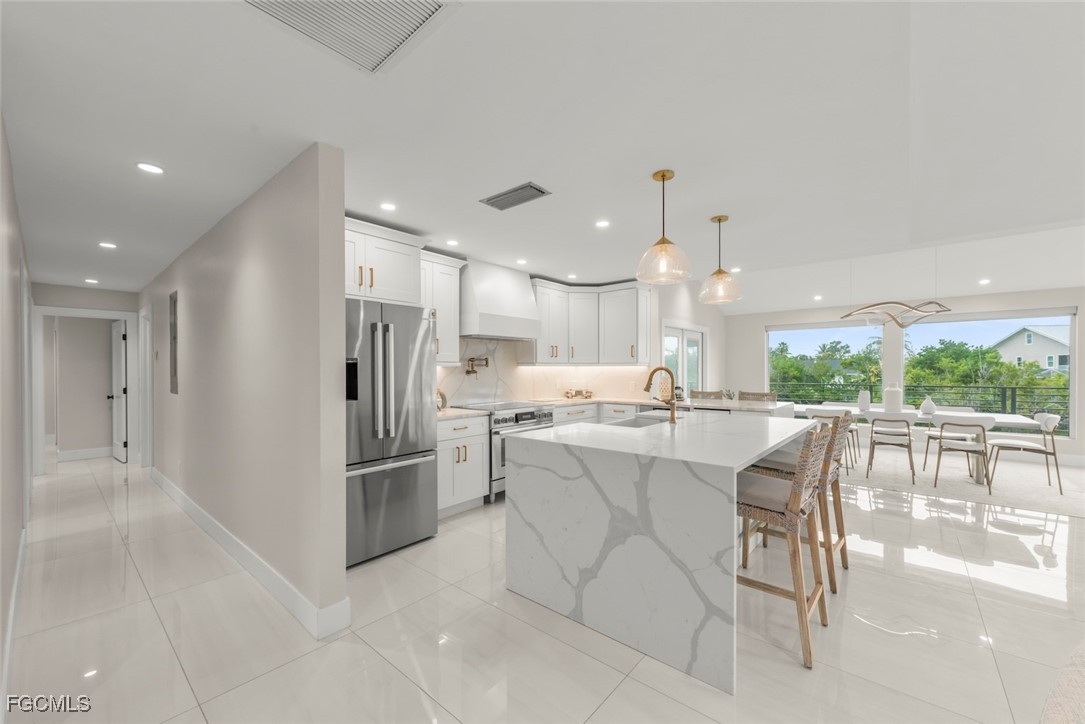 Your island oasis! Beautifully renovated and custom designed, Sanibel waterfront home. Located in Gumbo Limbo, this homeowner spared no expense in updates and upgrades. All new hurricane impact windows and doors throughout. No maintenance James Hardie cement exterior siding. Metal roof that has undergone a recent re-screw. The modern kitchen features stainless steel appliances including a wine fridge, induction stove and a wall mounted pot filler. Floor to ceiling windows overlook the lake which brightens the whole upstairs with natural light and breathtaking views. High end designer light and plumbing fixtures used throughout the home. French doors lead to a screened lanai featuring a large hot tub and plenty of room for entertaining off both the primary bedroom and dining room. Gorgeous landscaping complete with lighting. Plus a hot tub and fire pit for all your entertaining needs.