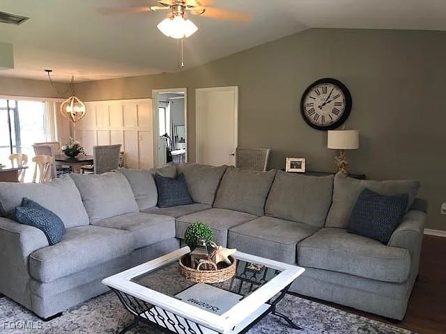 Available now, this beautifully maintained 3-bedroom, 2-bathroom single-family home offers a serene lifestyle on a freshwater canal basin in Cape Coral. Step inside to find an airy interior featuring vaulted ceilings and durable wood laminate flooring throughout, with tile in the bathrooms. The smart layout includes a primary bedroom with an attached full bath, while a stylish barn door in the living room provides separation for a private guest suite. Outdoor enthusiasts will love the large, gorgeous fenced yard featuring a banana tree and direct access to the water—bring your kayaks, paddleboards, or boat! The home is equipped with central air, forced air heating, in-unit laundry, and a 2-car attached garage. Located in a quiet residential neighborhood near Veterans Blvd and Santa Barbara, you are within walking distance of Publix, Target, and Walgreens. Cats and dogs are welcome!