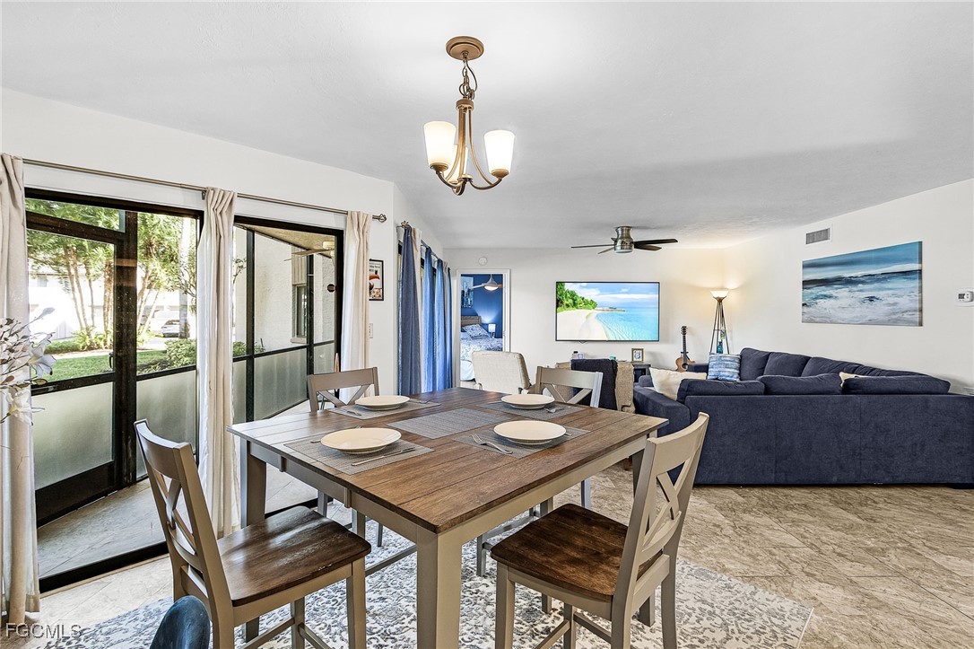 Amazing deal in Fiddlesticks Country Club! This beautifully maintained first-floor condo in The Highlands offers 2 bedrooms, 2 bathrooms, and 1,120 sq ft of comfortable living space, and is offered fully furnished. It features tile flooring throughout with elegant 5-inch baseboards, an updated kitchen with upgraded cabinetry and granite countertops, and modernized bathrooms. The master bath includes an enlarged walk-in shower with a tiled bench and built-in cove. Enjoy the expansive lanai, accessible from the living room, dining area, and master bedroom. The split floor plan provides excellent privacy for guests. Residents love this premier gated community with a convenient back gate into Briarcliff. Resort-style amenities include two championship golf courses with putting greens, chipping areas, driving range, and golf pro shop; 8 Har-Tru clay tennis courts with pro shop (one of the top programs in Southwest Florida); pickleball and bocce ball courts; a zero-entry pool with cabana bar and poolside dining; a state-of-the-art fitness center staffed by a personal trainer; a dedicated dog park; an elegant clubhouse with formal and casual dining; and a vibrant year-round social calendar featuring outstanding themed events. This rare first-floor gem perfectly combines luxury, convenience, and an active lifestyle—don't miss out; schedule your private showing today!