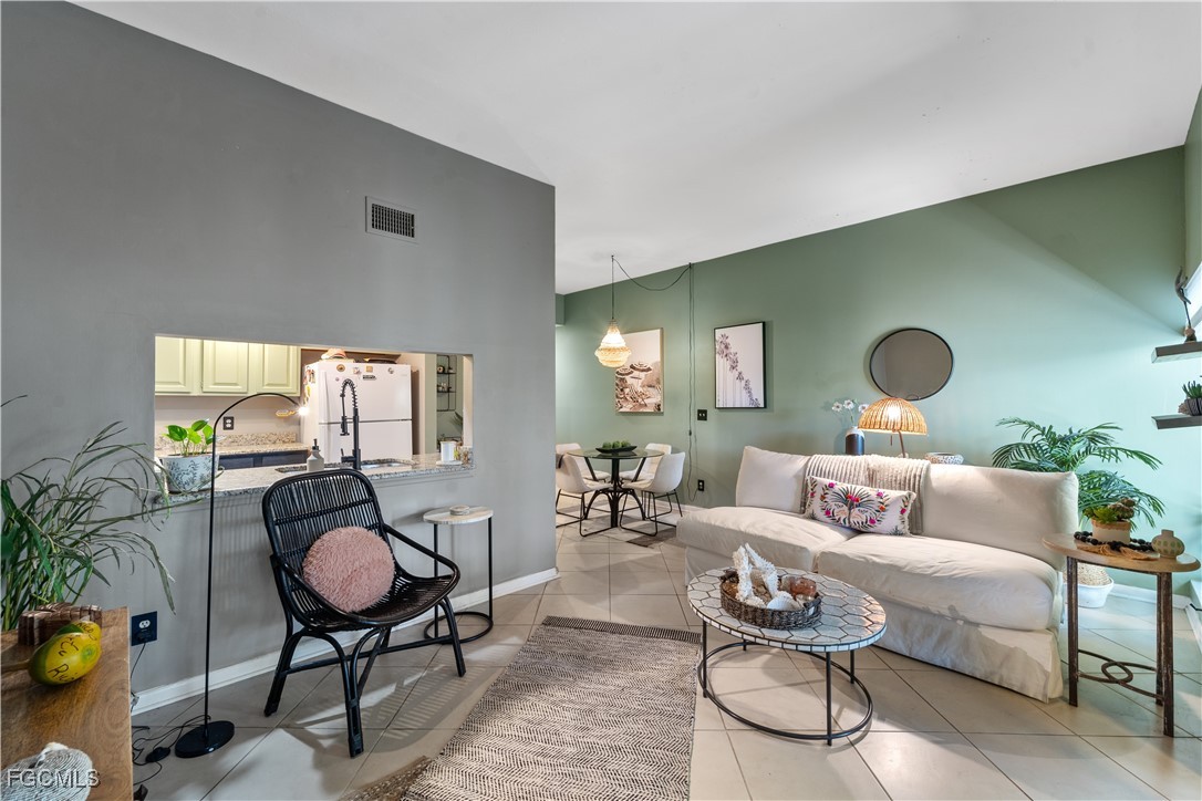 GORGEOUS LAKEVIEW, FRACTION OF THE PRICE! SELLER LOOKING AT ALL OFFERS! | Welcome to 8805 Lateen Lane #103 | Discover this beautiful ground-level condominium, ideally situated close to the sunny and sandy Sanibel Island and Fort Myers Beach. With no stairs to navigate, accessibility is a breeze. The backyard oasis offers serene & picturesque lake with a tranquil fountain feature - perfect for relaxation. Enjoy a private outdoor garden area and screened-in lanai - great for unwinding as the sun sets. Recent upgrades feature laminate flooring in the master bedroom and charming shiplap accents in the bathroom and kitchen. The volume ceilings in the living/dining area and master bedroom create a spacious, airy feel. This condo includes a designated covered parking spot right out front for your convenience. NO FLOOD FROM MILTON, HELENE, IAN OR IRMA! - | Paddle Creek is close to Lakes Park, beaches, dining, theaters, Southwest Florida International Airport, and more. Don't miss this fantastic opportunity to own a piece of paradise in a prime location! Schedule your showing today!