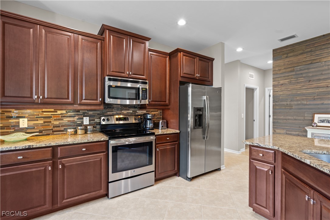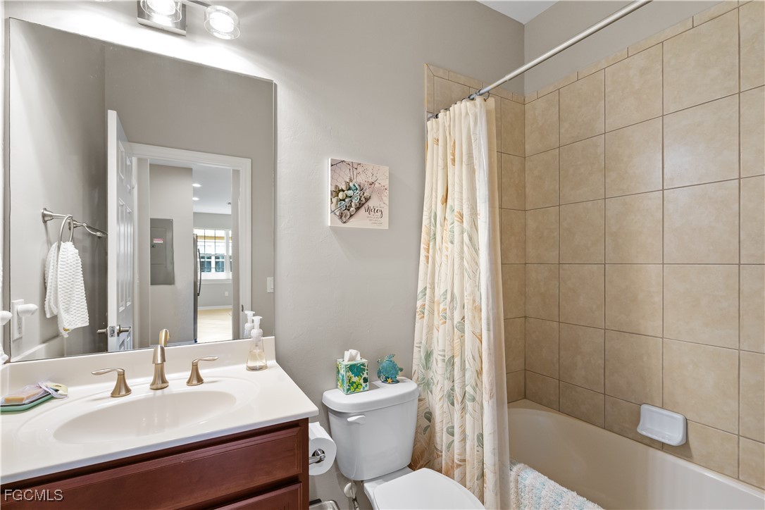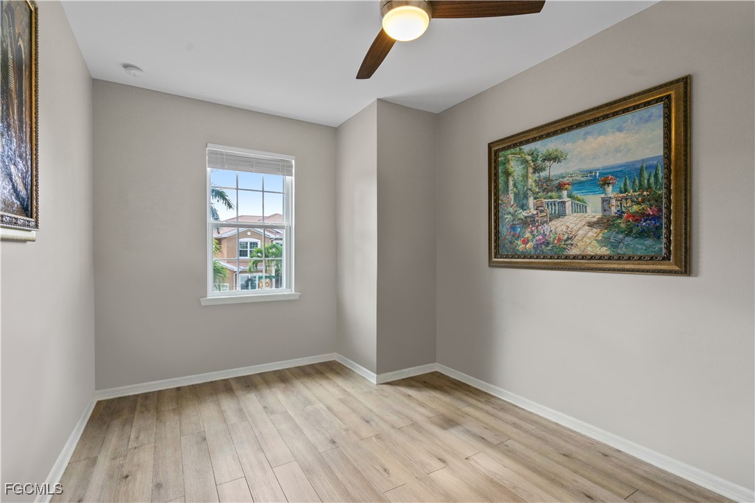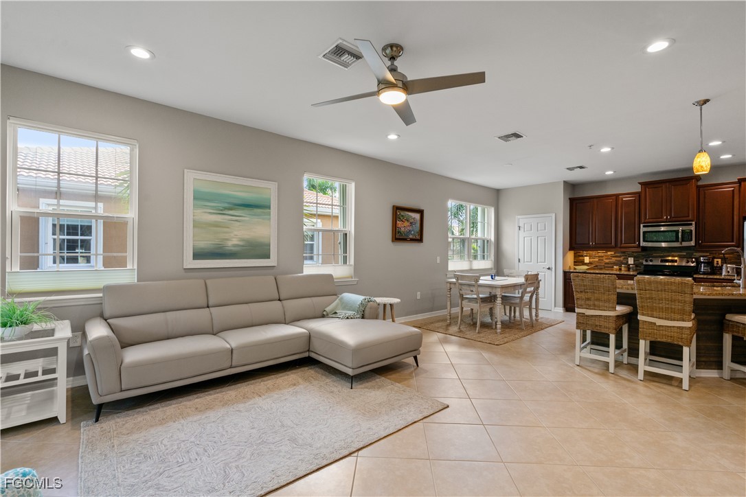 Welcome to Creekside Preserve. Built in 2015 and impeccably maintained, this move-in-ready 2nd floor condo offers a bright & open floor plan with 3 bedrooms plus a den, 2 bathrooms, and over 1,600 square feet of comfortable living space. Surrounded by peaceful wooded views, the home provides a level of privacy rarely found in condominium living. Thoughtful upgrades are found throughout, including granite countertops, stainless steel appliances, accordion hurricane shutters, luxury vinyl flooring in the bedrooms, stylish feature walls, and custom high-end closet systems in each bedroom and the pantry. Major systems and appliances have been updated with a dishwasher replaced in 2020, air handler in 2021, AC condenser in 2023, and hot water heater in 2023. Residents enjoy access to a beautifully maintained lakefront pool, clubhouse, and fitness center. Conveniently located near a wide variety of shopping and dining options with easy access to Coconut Point, Miromar Outlets, I-75, RSW International Airport, and our world-famous beaches, you’ll enjoy the lifestyle offered here. This exceptional condo is one of the best values available on the market today. Act fast!