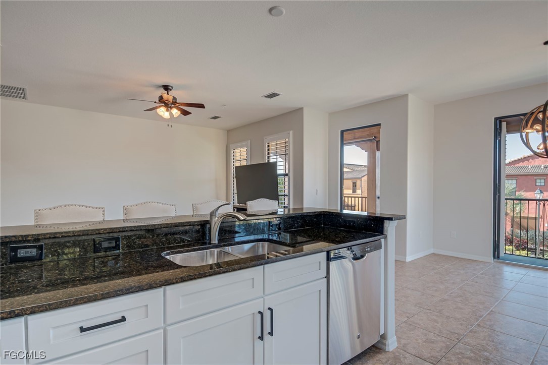 FABULOUS PRICE on this BEAUTIFUL SAN BENITO Flat! This home offers so much! All your living area on one level, very bright open concept floorplan. Featuring 2 nice sized bedrooms, each with their own full bath, 1.5 car garage. EXTRA LARGE BALCONY to enjoy the warm Florida breezes. Upgrades include coveted white cabinetry, granite countertops throughout, stainless appliances, Plantation shutters, LVP flooring, NEW AC 2024.Equipped with hurricane impact windows and doors and a fire sprinkler system, added peace of mind.