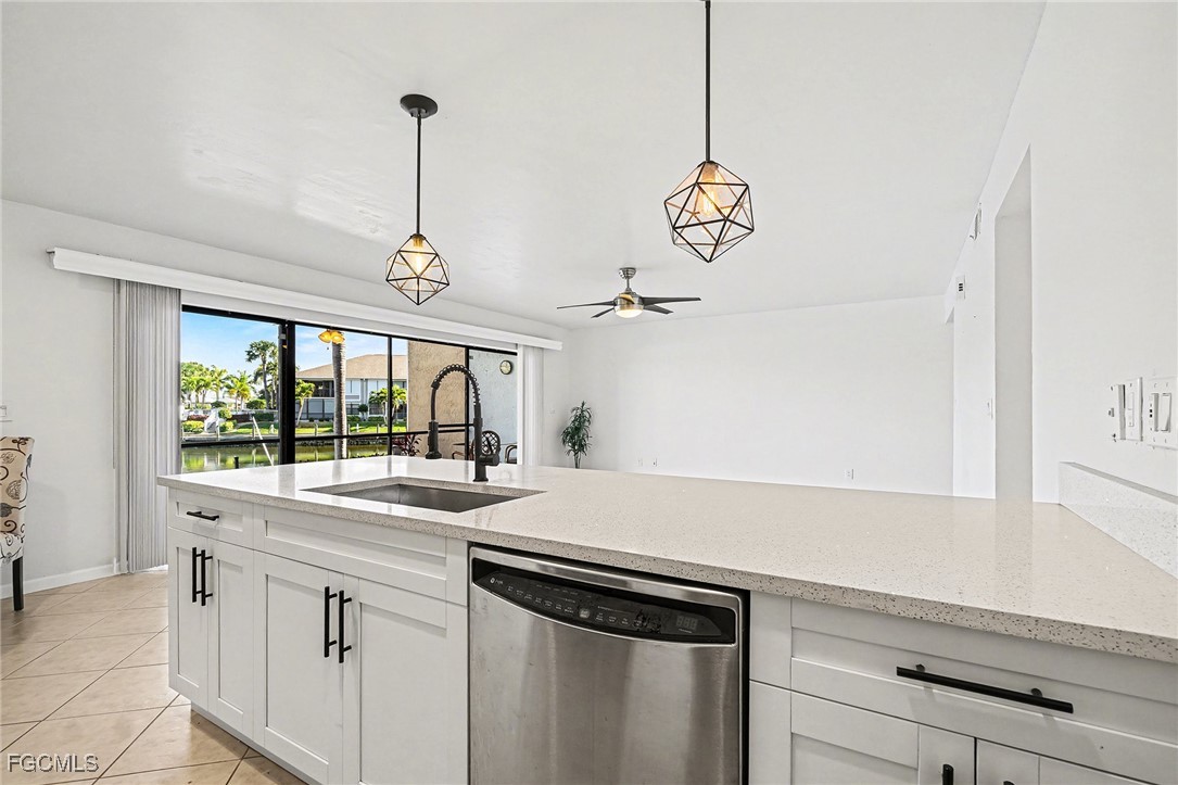 Rarely available Barclays waterfront condo offering an exceptional Southwest Cape Coral boating lifestyle. This first-floor, two-bedroom, two-bath residence provides approximately 1,074 square feet of comfortable living space, a covered carport, and the convenience of stair-free access. Enjoy expansive water views from the living room and east-facing lanai, positioned to capture beautiful morning light while avoiding harsh afternoon sun. The lanai overlooks a wide intersecting canal, ideal for watching boats pass, kayakers and paddleboarders explore, and wildlife such as dolphins, manatees, and seasonal birdlife appear throughout the year. Boaters will appreciate the ability to tie up directly outside the condo, with approximately 24 minutes to open water and bridge clearance of 10’3”. Cape Harbour is just a 5-minute drive, while Tarpon Point is a 10-minute drive, 15-minute boat ride, or 35-minute kayak. From there, enjoy easy access to Sanibel Island and the Gulf of Mexico. The condo has been updated with remodeled kitchen cabinetry, new countertops, a brand-new refrigerator, newer appliances, and updated bathroom vanities. Epoxy-finished lanai flooring adds durability and style, along with additional storage. Washer and dryer are included. Residents enjoy a recently renovated waterfront pool and picnic area set directly along the canal, creating a peaceful, resort-style atmosphere. Located south of Cape Coral Parkway, this desirable area offers convenient access to nearby shopping, dining, and entertainment, while maintaining a quiet residential feel. Waterfront, first-floor condos in the Barclays community are rarely available. Schedule your private showing today and experience true Gulf-access living in Southwest Cape Coral.