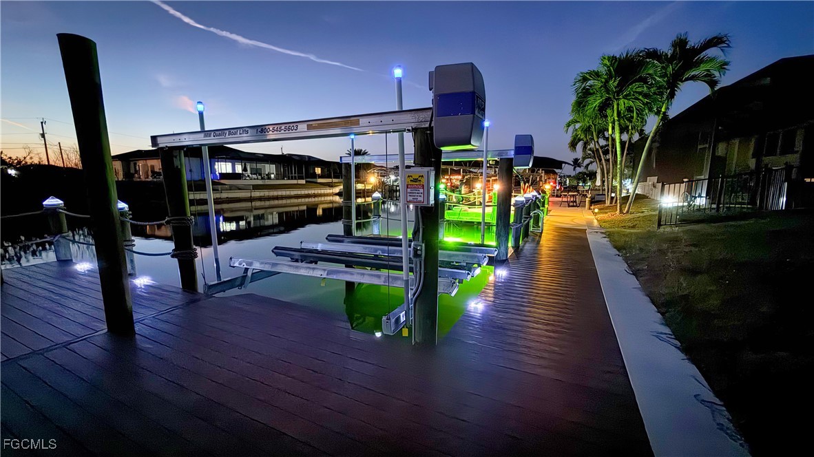 Rare Triple Gulf Access Lot with Seawall, Dock & Lift – Ready to Build! An exceptional opportunity awaits with this oversized triple Gulf access lot located on the Rococo Canal in NW Cape Coral. Featuring western exposure, this property delivers breathtaking Florida sunsets and the ultimate waterfront lifestyle—all with the heavy lifting already done. The lot is fully improved with a seawall and expansive dock system, allowing you to start building your dream home without delay. The seawall is constructed with 10-foot concrete panels and finished with stainless steel hardware throughout. The dock is designed for serious boating, accommodating up to a 30-foot boat, two jet skis, and space to tie up a 40-foot vessel at the captain’s walk. Boating amenities include a 13,000 lb IMM Platinum Series boat lift with a 12’6” cradle, aluminum bunks, maintenance-free pulleys and bearing blocks, and four 10” lift piles. A 7,000 lb IMM Platinum Series dual jet ski lift with walk board is also in place. Four new 9’ piles are already installed for a future 10x15 tiki hut, and solar lighting enhances both the captain’s walk and dock perimeter. The dock has received an $18,000 electrical upgrade, including 240V service to the boat lift, dedicated circuits with remote controls, and a Leviton pedestal offering 50-amp and 30-amp shore power, 120V outlets, hose bib, and dock lighting—everything needed for convenience and future expansion. Located in a fast-growing area of NW Cape Coral, this property offers both lifestyle and long-term value. Enjoy quick access to the North Spreader Canal, making trips to Matlacha’s waterfront dining and island charm a breeze. You’re also just minutes from Coral Oaks Golf Course, city parks, the Pine Island Road corridor, and within easy reach of Punta Gorda. Nearby, the highly anticipated Seven Islands development promises future marinas, upscale dining, entertainment, and mixed-use amenities. Build now or plan for the future—opportunities like this are rare. Don’t miss your chance to secure one of the finest Gulf access lots in Cape Coral.