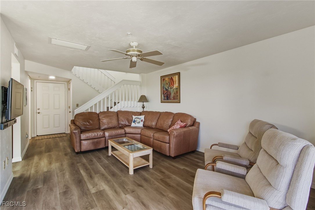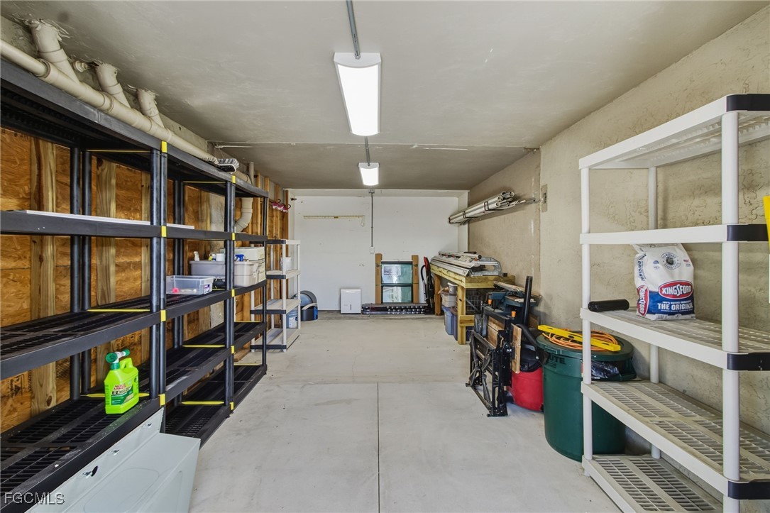 The lanai is fully glassed in for comfortable air-conditioning year-round. The high-impact windows and doors are a wonderful bonus. Inside you have two spacious bedrooms, with en-suite bathrooms, and an open floor plan. Another standout feature is the extended storage unit on the first level, perfect for kayaks, fishing poles, bikes, boat equipment, and more, with all shelving included.