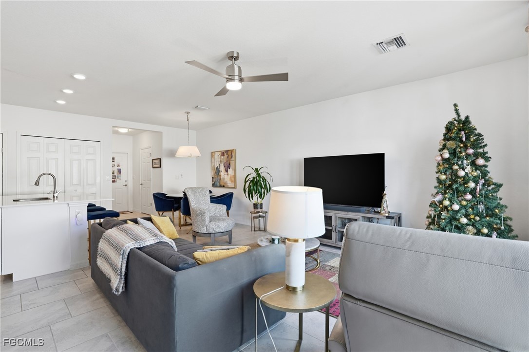 The kitchen includes an island with bar seating, walk-in pantry, and flows directly into the dining and living spaces. Upstairs, the primary suite includes a walk-in closet and ensuite bath with dual sinks and a walk-in shower. Two additional bedrooms and a full bath complete the second floor. Outside, the home features an attached garage, fenced area, and a private entrance. Portico residents enjoy access to a community pool, clubhouse, fitness center, basketball courts, pickleball, tennis, playground, and walking paths all with a low monthly HOA and a central location convenient to I-75, downtown Fort Myers, and local dining. This move-in ready townhome is ideal for year-round living, seasonal use, or rental investment.