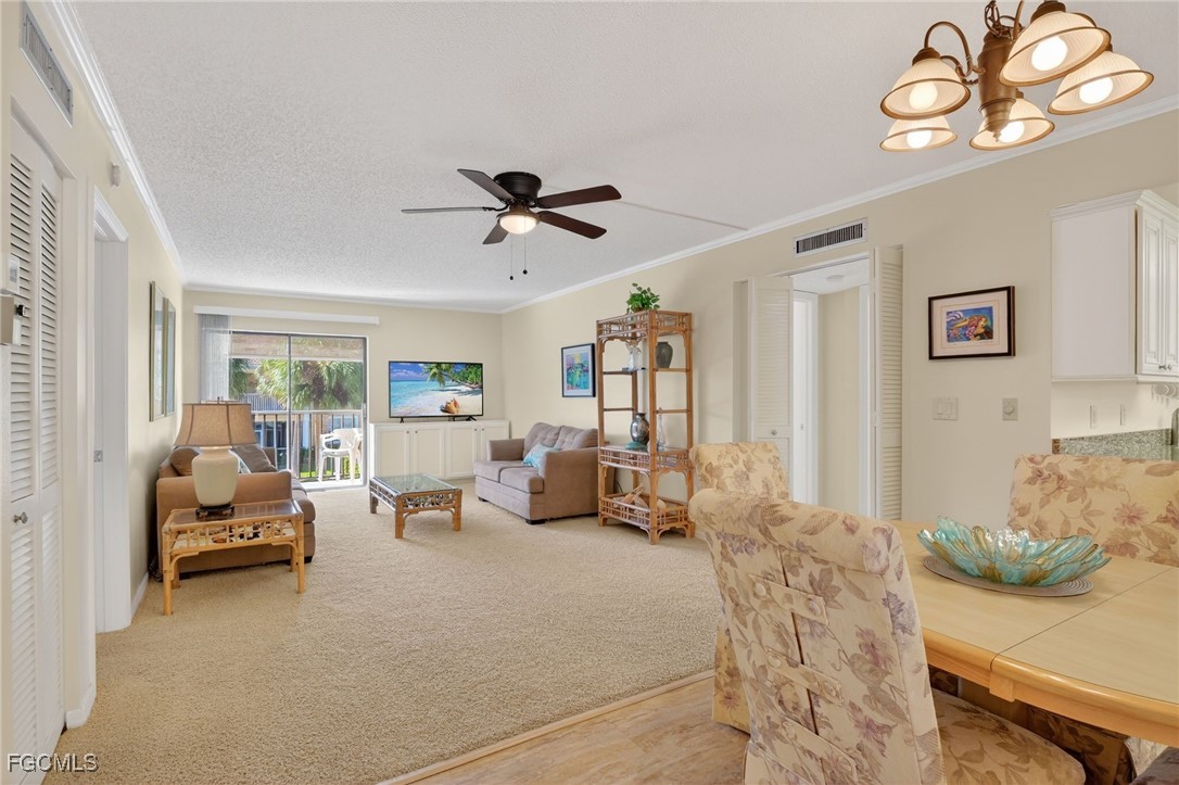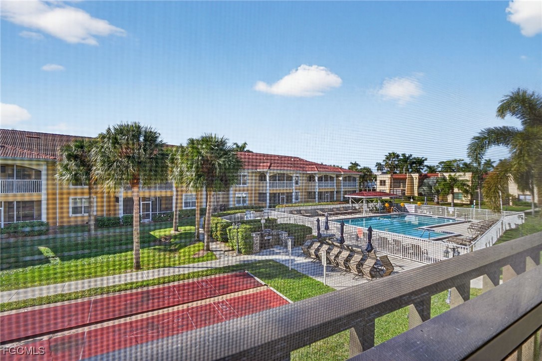 Welcome home to this charming 2 bedroom - 2 bath condo is located on the second floor and offers a turnkey living experience. Gorgeous updated kitchen features abundant cabinets, granite counters, dome ceiling, appliances, and tile floor. Features include a very open floor plan with foyer, great room and dining area. Spacious owners' suite with tasteful updated bathroom with double vanities, shower and tile floor. Split bedroom plan offers privacy for guests and second bedroom is well sized and guest bathroom has been updated. Carpet and tile throughout. Extra closet has plumbing and electric if you wanted to add washer/dryer. Sliders from the great room open to screened lanai and offers a tranquil outdoor space to entertain and relax. From the moment you enter you will see all of the beautiful appointments and all you need to bring are your personal items. Pet friendly with community pool, shuffleboard and laundry facilities. Ideal location off McGregor Blvd. with easy access to beaches, shopping, dining, entertainment, golf courses, medical facilities and downtown Fort Myers. This is your opportunity to own this beautiful condo and enjoy carefree living in paradise.