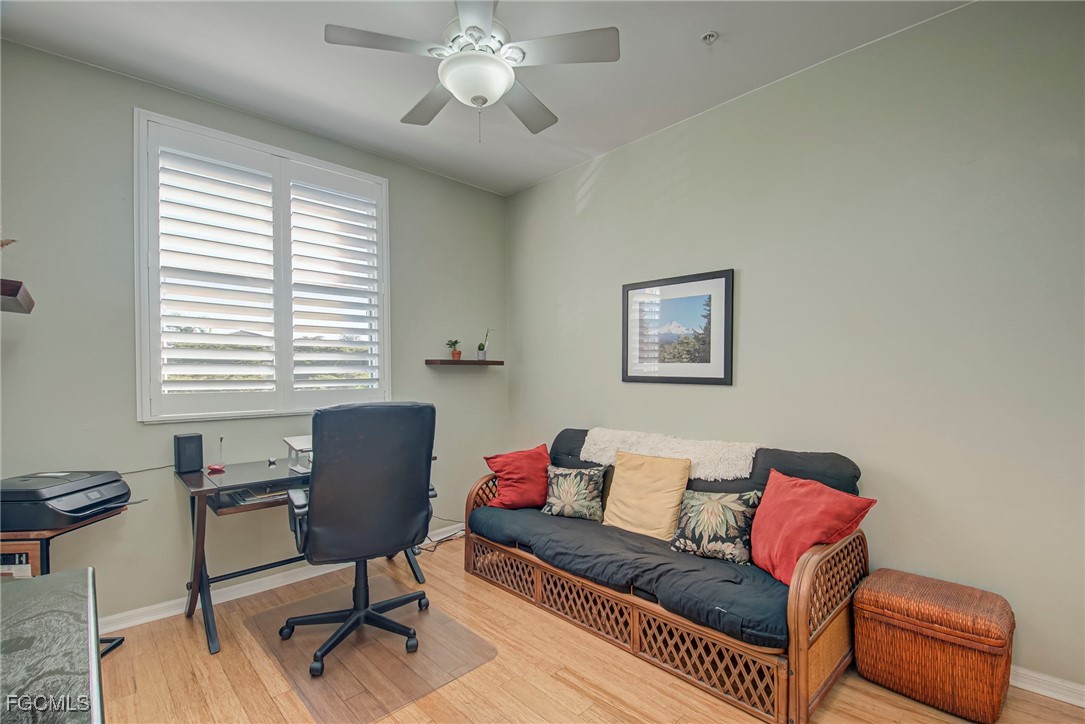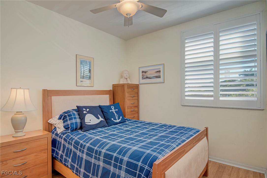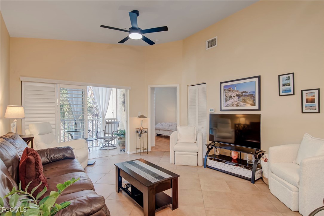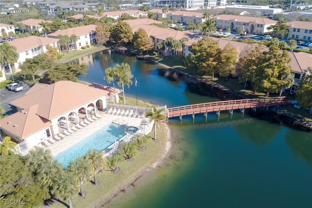Welcome to your slice of paradise in beautiful Fort Myers, Florida! This bright and airy second-floor end-unit condo overlooking the water is located in the highly desirable, gated Bellamar at Beachwalk community and offers the perfect blend of comfort, style, and resort-style living. This residence features 3 bedrooms and 2 baths in a split floor plan, providing excellent privacy. Volume ceilings enhance the open-concept layout, while wood flooring in the bedrooms adds warmth, complemented by uniform tile throughout the main living areas for easy maintenance and a cohesive look. The open kitchen features stainless steel appliances, granite countertops, a breakfast bar, and seamless flow into the living and dining spaces—ideal for entertaining or everyday living. Plantation shutters adorn all windows and the lanai slider, adding timeless elegance throughout. The spacious primary suite boasts a custom walk-in shower and a custom wall-unit closet, while both bathrooms are finished with marble countertops. This condo features a screened-in lanai overlooking the lake, offering one of the best views in the community with a serene, unobstructed water view that provides exceptional privacy and a peaceful setting—perfect for enjoying your morning coffee or taking in beautiful sunset views at the end of the day. Bellamar at Beachwalk is known for its lush tropical landscaping and low monthly fees, and residents enjoy a lakeside resort-style pool and spa, fitness center, and the peace of mind of a recently completed new roof. Investor- and seasonal-buyer friendly, the community allows up to 12 rentals per year with a 30-day minimum, making this an excellent opportunity for income potential or flexible seasonal use. Just minutes from Fort Myers Beach, Sanibel Island, shopping, dining, and entertainment, this condo is ideal as a full-time residence, winter retreat, or investment property. A must-see opportunity to enjoy the Southwest Florida lifestyle at its finest.