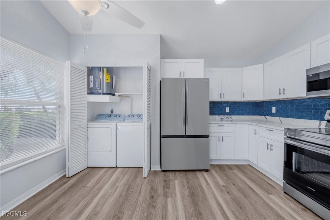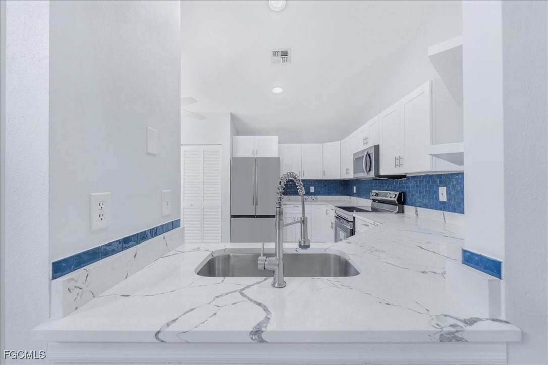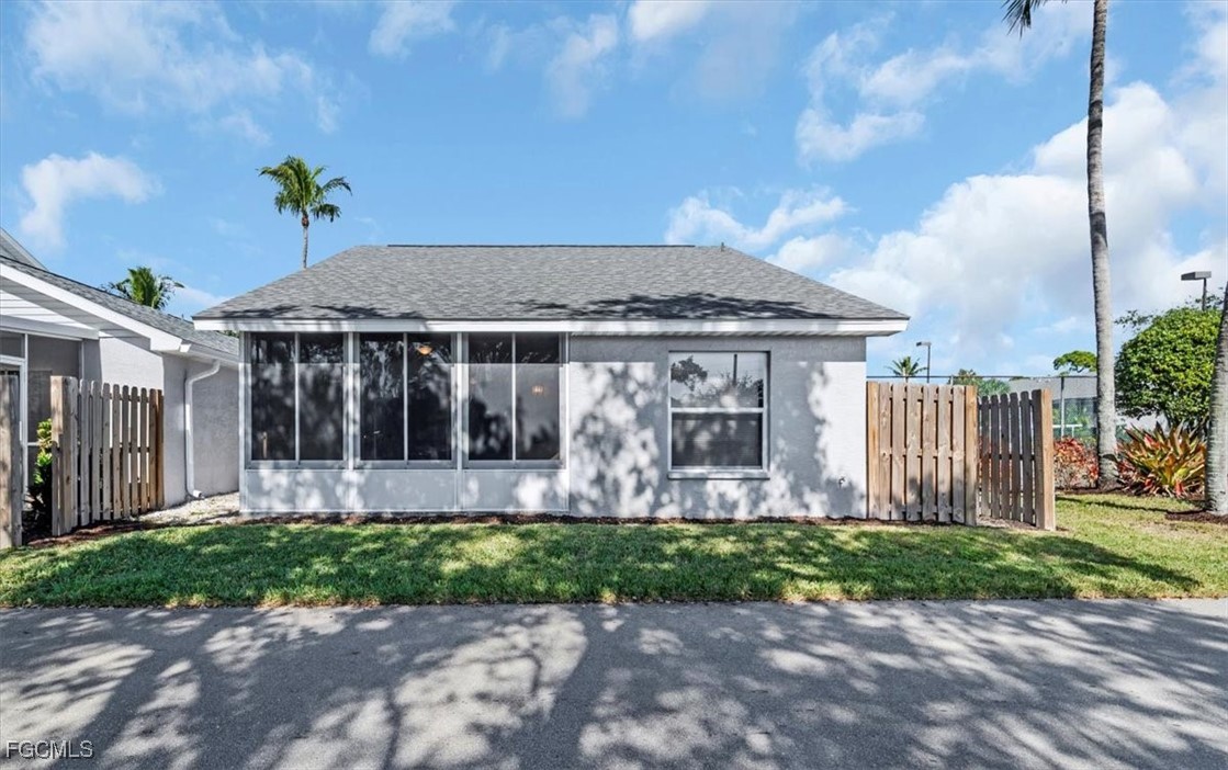 Experience elevated, low-maintenance living in this beautifully remodeled and exceptionally private condo, ideally positioned in the heart of South Fort Myers. Whether you’re seeking a refined starter home, an elegant second residence, or a sophisticated snowbird or forever retreat, this residence delivers both lifestyle and value. Designed for peace and privacy, this home features no neighbors above and is only connected next door by a private storage closet—eliminating shared living walls. Inside, a light-filled open floor plan with a sense of space and sophistication, enhanced by a bonus Florida Room perfect for relaxing or entertaining. Luxury vinyl plank flooring flows seamlessly throughout, setting the stage for the designer-inspired kitchen featuring gorgeous quartz countertops, soft-close cabinetry, a chic backsplash, stainless steel appliances, and includes a new washer and dryer. The spa-like bathrooms showcase modern vanities with stylish shiplap accents, while fresh paint, new ceiling fans, and curated lighting fixtures add a polished, upscale finish. Significant improvements offer confidence and comfort, including a new roof (2024), HVAC system (2022), and water heater (2019). The Florida Room enjoys a coveted southern exposure, ideal for basking in natural light, and features cool tile flooring that is both elegant and easy to maintain. An attached 5’ x 7’ private storage closet is perfect for housing bicycles, beach gear, or outdoor essentials—especially ideal for those who enjoy an active lifestyle. Lakes Regional Park is just a bike ride away, offering miles of scenic paved paths, tranquil lakes, lush gardens, and year-round activities. Enjoy morning rides, sunset cruises, or leisurely afternoons exploring one of Fort Myers’ most beloved outdoor destinations—all without getting in your car. Residents of the Summerlin Trace community enjoy resort-style amenities including a large community pool, tennis courts, and pickleball, all set within a peaceful, well-maintained neighborhood. The location is unmatched—within easy biking distance to Lakes Regional Park, FSW State College, and the Barbara B. Mann Performing Arts Hall, and just a short drive to Fort Myers Beach, Sanibel Island, premier shopping, dining, and entertainment. This is a rare opportunity to own a stylish, private, and impeccably updated condo in one of South Fort Myers’ most desirable lifestyle locations. Schedule your private showing today before this exceptional offering is gone.