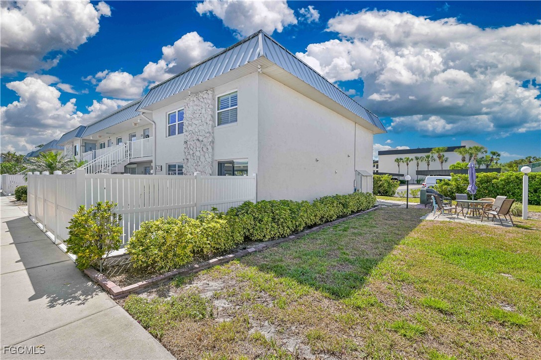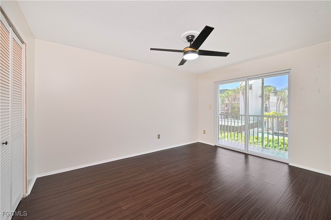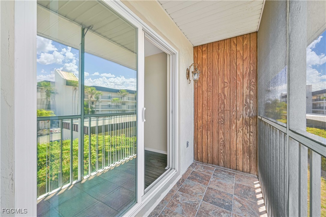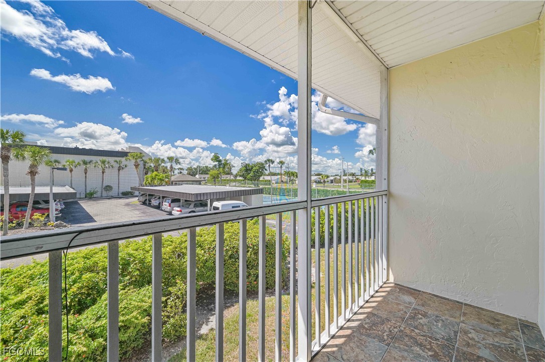 Completely updated and move-in ready! This gorgeous 2 bed, 1 bath second-floor end unit condo offers stylish living with thoughtful upgradesthroughout. Enjoy new flooring, chair rail molding, elegant gold accents, plantation shutters, and updated lighting and fixtures. The kitchenfeatures granite countertops, while the bathroom is updated with a quartz vanity for a modern touch. Upgrades include impact-resistantwindows and slider, surround sound system, in-unit laundry, AC (2017), and water heater (2019). The primary suite includes a private balconyand a spacious walk-in closet. Located just off College Parkway, you'll love being centrally located near shopping, dining, and everything FortMyers has to offer. Regency Condo (NOT 55+) offers fantastic amenities including a pool with tiki bar, covered parking, shuffleboard, and lowHOA. *(Virtually Staged Photos)