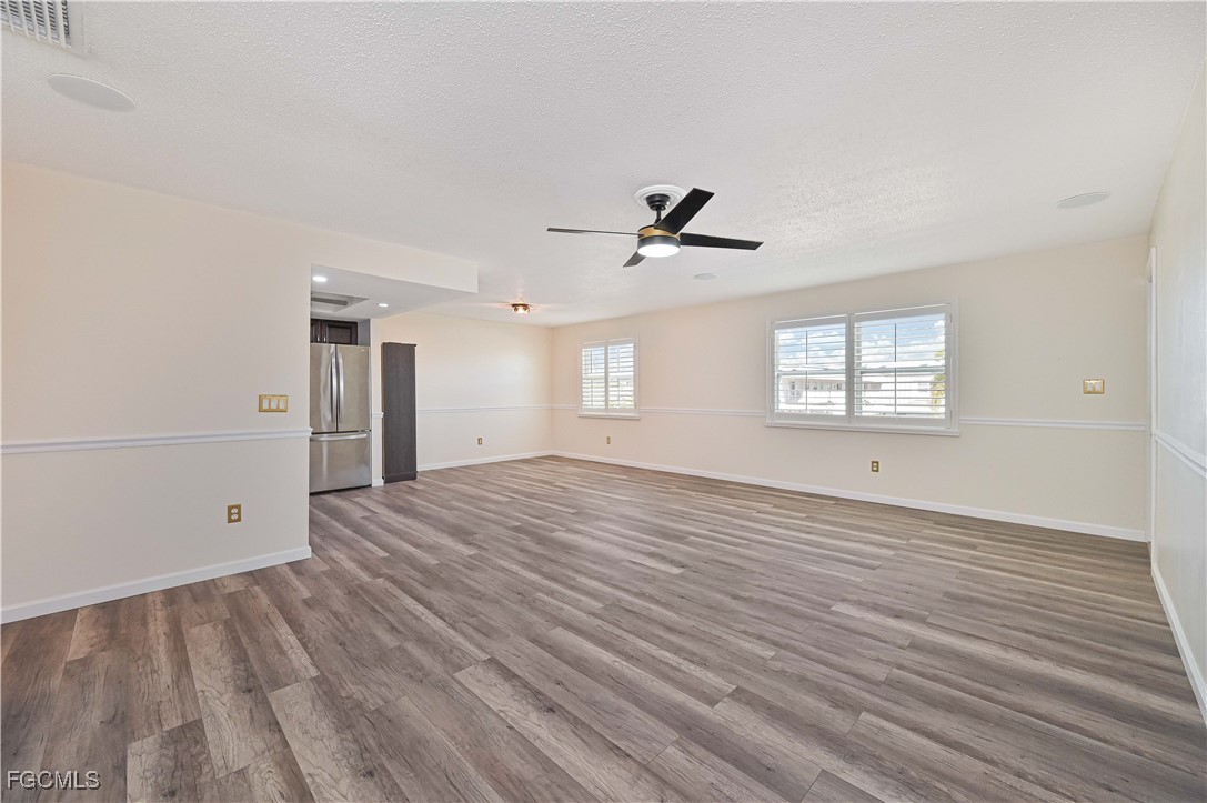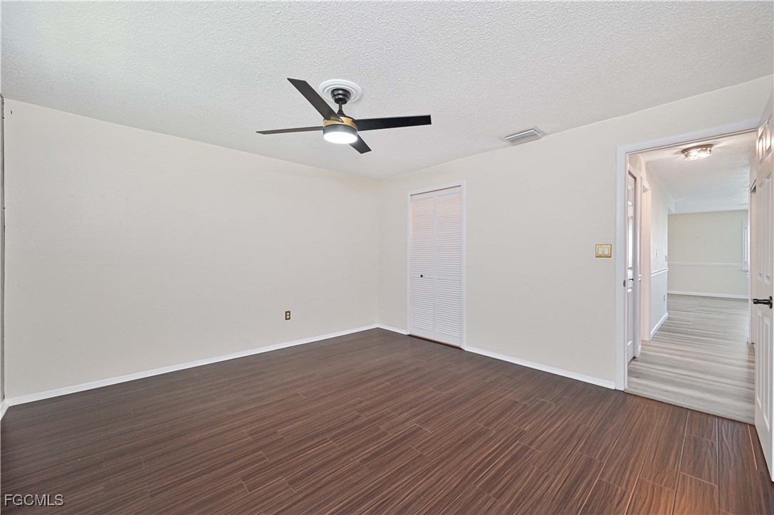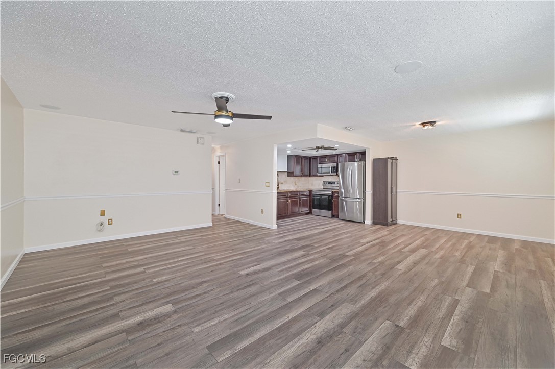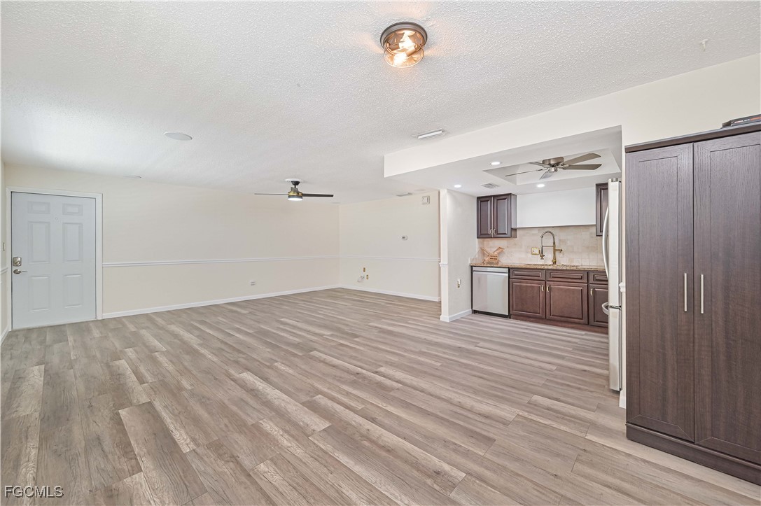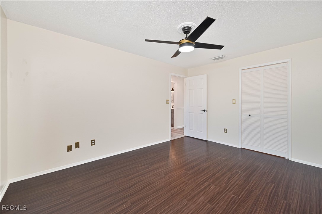 Completely updated and move-in ready! This gorgeous 2 bed, 1 bath second-floor end unit condo offers stylish living with thoughtful upgradesthroughout. Enjoy new flooring, chair rail molding, elegant gold accents, plantation shutters, and updated lighting and fixtures. The kitchenfeatures granite countertops, while the bathroom is updated with a quartz vanity for a modern touch. Upgrades include impact-resistantwindows and slider, surround sound system, in-unit laundry, AC (2017), and water heater (2019). The primary suite includes a private balconyand a spacious walk-in closet. Located just off College Parkway, you'll love being centrally located near shopping, dining, and everything FortMyers has to offer. Regency Condo (NOT 55+) offers fantastic amenities including a pool with tiki bar, covered parking, shuffleboard, and lowHOA. *(Virtually Staged Photos)