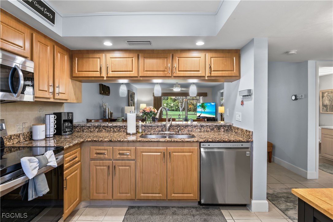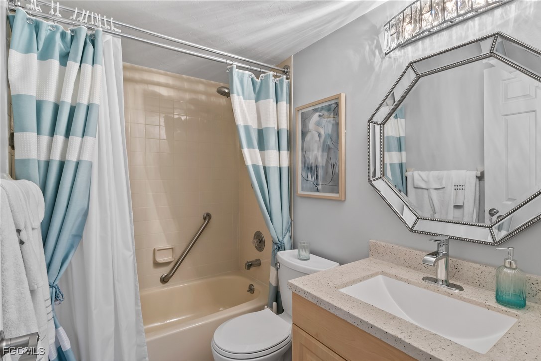 AMAZING LOCATION! Live your carefree Florida lifestyle at a fraction of the cost in this cozy condo that has been loved and well kept. This 2-bedroom, 2-bath condo lives far larger than its square footage, thanks to a thoughtfully designed and open split floor plan that offers wonderful privacy, with each bedroom featuring its own bathroom. Warm, inviting colors throughout create a comfortable, welcoming retreat you’ll love coming home to. Enjoy creating meals for you or your guests in the generous kitchen featuring stone counters, beautiful wooden cabinetry, a large refrigerator/freezer, and a breakfast bar. A few of the extra bells and whistles include: Tile flooring, walk in closet, electric shutters, washer and dryer, and lots of storage!