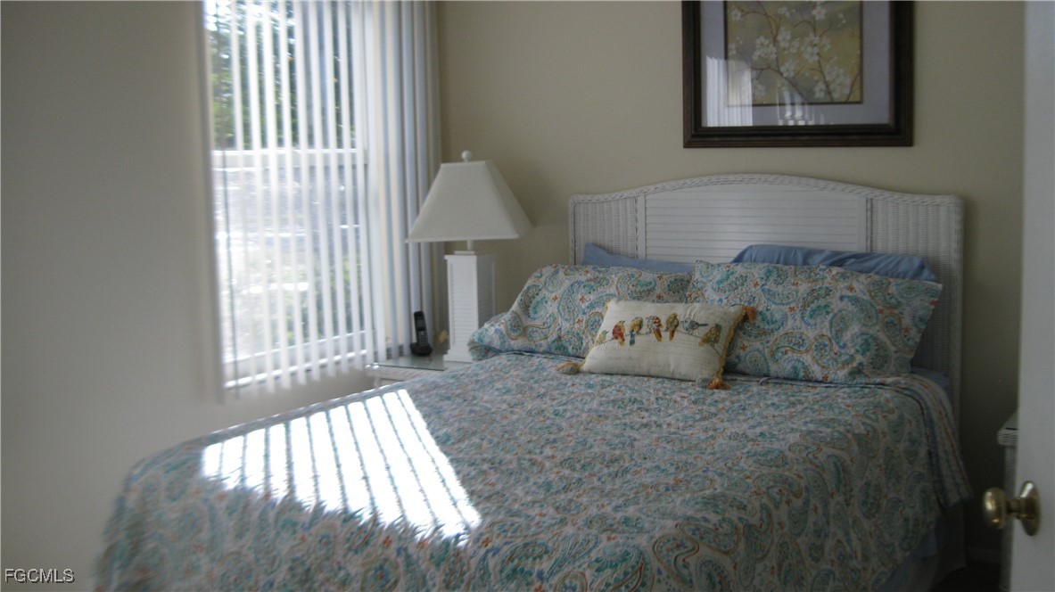 Neat and clean, 3 bedroom, 2 bath corner condo on the first floor, priced to sell! 3rd bedroom currently being used as a den. Located close to the community clubhouse and pool. PRIME LOCATION within 7 miles of the beaches and within walking/biking distance to Lakes Park, a nature lover's haven for walking and observing Florida wildlife. There's also a fantastic Farmer's Market on Wednesdays. The community is GATED, beautifully maintained, and a short drive to shopping, restaurants, and Barbara B Mann Theatre! Health Park and medical offices are nearby. A beautifully landscaped walking/biking path surrounds the community with a boardwalk and tropical garden along the way. There is a covered carport space or you can park just in front of your condo, which is convenient for unloading groceries, etc. Condo has plenty of storage inside as well as an outside storage room for all your beach toys! The large kitchen includes a breakfast nook and windows bringing in natural light. The living/dining area is spacious and perfect for entertaining. Bring your guests out onto the large lanai, which is the talk of the town! A private backyard view of the lake, landscaping and sunrises will bring calmness and serenity. Primary bedroom has sliders opening onto the lanai, perfect for star gazing. Roomy walk in closet. will hold all your clothing and then some. En suite bath has a shower, vanity, and great natural light. Take a look at The Park, It's a perfect winter getaway. And it's big enough for a full-time residence too! There is personnel on site daily with Management hours in the Clubhouse on Wednesdays. Social activities in season so be as busy as you want to be! Inexpensive 9 HOLE EXECUTIVE GOLF COURSE across the street. Call now for your private showing! Sorry no dogs and non-smoking building.