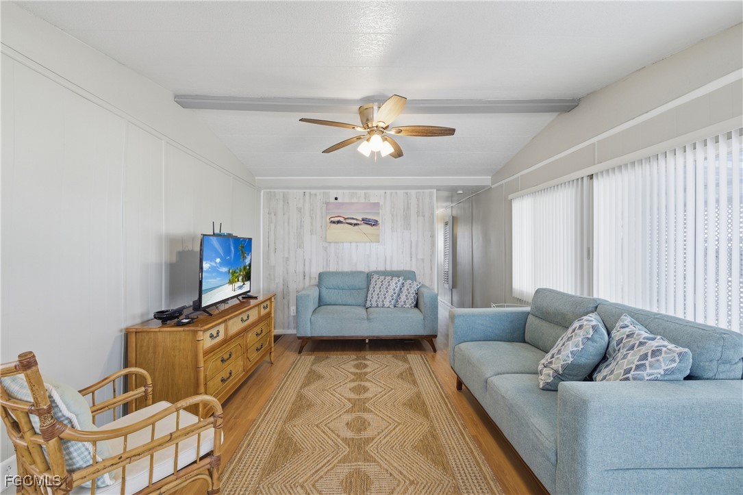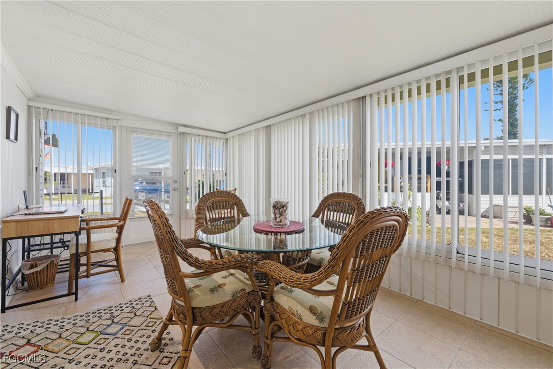 Adorable two-bed, two-bath home in 55+ Forest Park waiting just for you in sunny Florida! Located in a nice setting on a cul-de-sac, home offers outdoor space as well a cozy interior. Pretty furniture and decor throughout, the main bedroom has beautiful plantation shutters adding to the home's appeal. A side screened lanai, and white bright kitchen are additional features. Sold turnkey, everything is included along with a golf cart that has brand new batteries! Forest Park is a nice place to be with low HOA fees ($122/month-you own the land), free wifi, nice neighbors, activities, community pool, parties, dances, shuffleboard, and other amenities. Forest Park is in a great location, close to shopping, restaurants and just a quick trip over the bridge to beautiful downtown Fort Myers. Come and see this sweet home today!