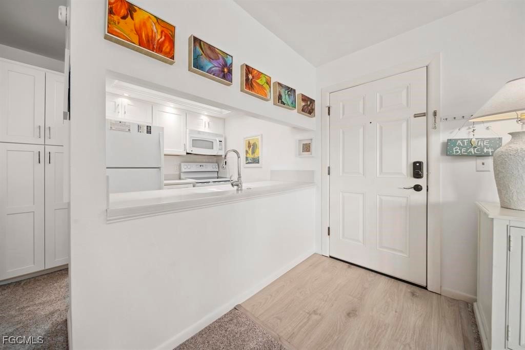 Sanibel Moorings, what better place is there on this island to relax after a hard day of shelling and shopping for treasures. Your tropical & cozy 1 bed, 1 bath condo is that magical place you go to, to savor the serenity that island life has to offer. This complex has always been the islands most popular resort, known for its flora and fauna, ideal beachfront location and offers both beach and boating, tennis & pickleball and numerous amenities for owners and guests. This condo is located on the canal side of the property, with easy access to the pool and docks and just a quick hop across to the shell laden beach just waiting for you. This unit suffered zero damage from any of the hurricanes, including Ian. Unit has new carpet, new LVT tile in entryway, kitchen and bathroom, new solid wood kitchen cabinets with new subway tile backsplash, new pantry, all completed in the summer of 2024. With its breezy screened lanai, great spot for al fresco dining or just a quiet place to read that novel. Whether this is a 2nd home or an investment, you can't go wrong with this 2nd floor unit. Sanibel is back and you don't want to miss this opportunity!