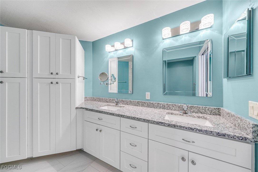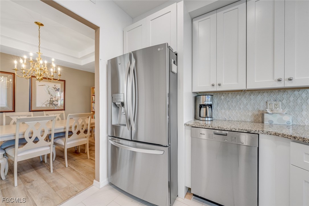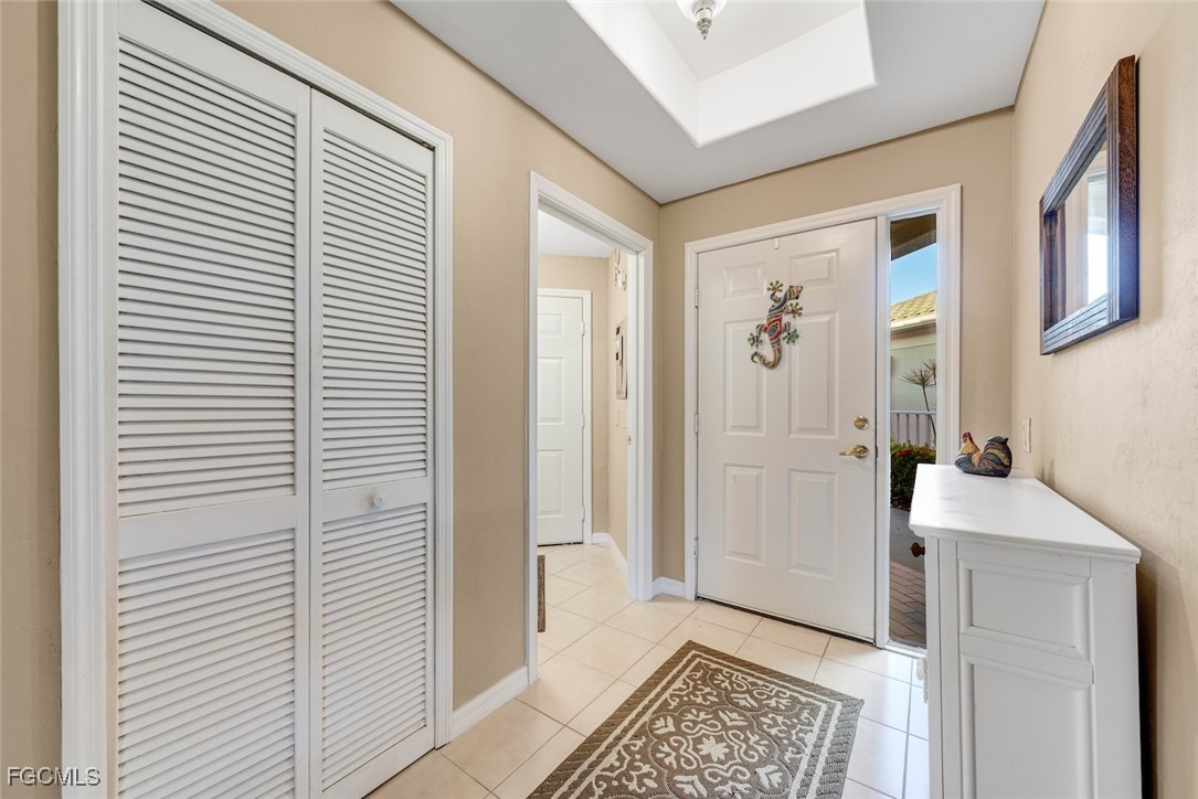 THE SUNSHINE POURS IN to this rare first floor end unit in the Grande Cay community, deep in a quiet corner of prestigious Gulf Harbour in Southwest Ft. Myers. Completely upgraded and immaculately decorated, at 1633 sq ft the unit is slightly larger than typical downstairs units. More importantly, as an end unit, three extra windows allow sunlight to stream into every corner. The wide screened lanai overlooks both the golf and lake views. Electric shutters provide protection. Tray ceiling highlights the entry foyer. Step into the large living room with neutral décor and absorb the beauty of the golf course and lake views. Comfortable furnishings invite relaxation. Plank-style vinyl thru the living area. Soft warm carpet in bedrooms and den. Bright kitchen features recessed lighting and tons of soft-close cabinets, all with granite countertops and 42” uppers. Plus a large pantry. Stainless appliances just 2 years old. Cozy breakfast nook offers the same spectacular golf and lake views for morning coffee or casual dining. Host more elaborate gatherings in the formal dining room with elegant tray ceiling and large sunshine-inviting window. Or just veg out on the lanai. The primary bedroom has two large walk-in closets plus a handy linen closet. The upgraded primary bath has twin sinks, granite countertops, an oversized shower and huge cabinets. Guest bedroom has large closet and there is an extra closet off the upgraded guest bath. Den configured as an office/craft room with desk, files and overhead cabinets. There is also a pull-down Murphy bed, tucked away until needed for extra guest sleeping. Sold completely turnkey with classic comfortable furnishings so it is move-in ready. Just a few steps to the refurbished community pool and spa, the social center of Grande Cay with an active event calendar. Miles of pathways inside the gate to enjoy bike rides, jogging or casual walks in the sunshine. Or simply stroll the private Gulf Harbour Eagle Perch Island along the Caloosahatchee River for gorgeous sunsets. Fees include water, internet and access to the private river-front island. Close to Ft. Myers Beach, Sanibel Beach and nearby Bunche Beach. Surrounded by shopping and restaurants. Easy access to SWFL International Airport, plus Twins and Red Sox baseball stadiums. Additional amenities of golf, tennis, fitness center and two restaurants require an optional membership, now available at a surprisingly low fee.
