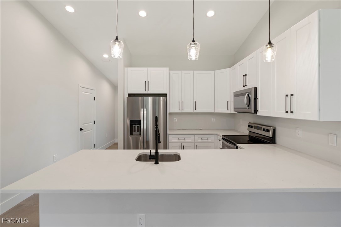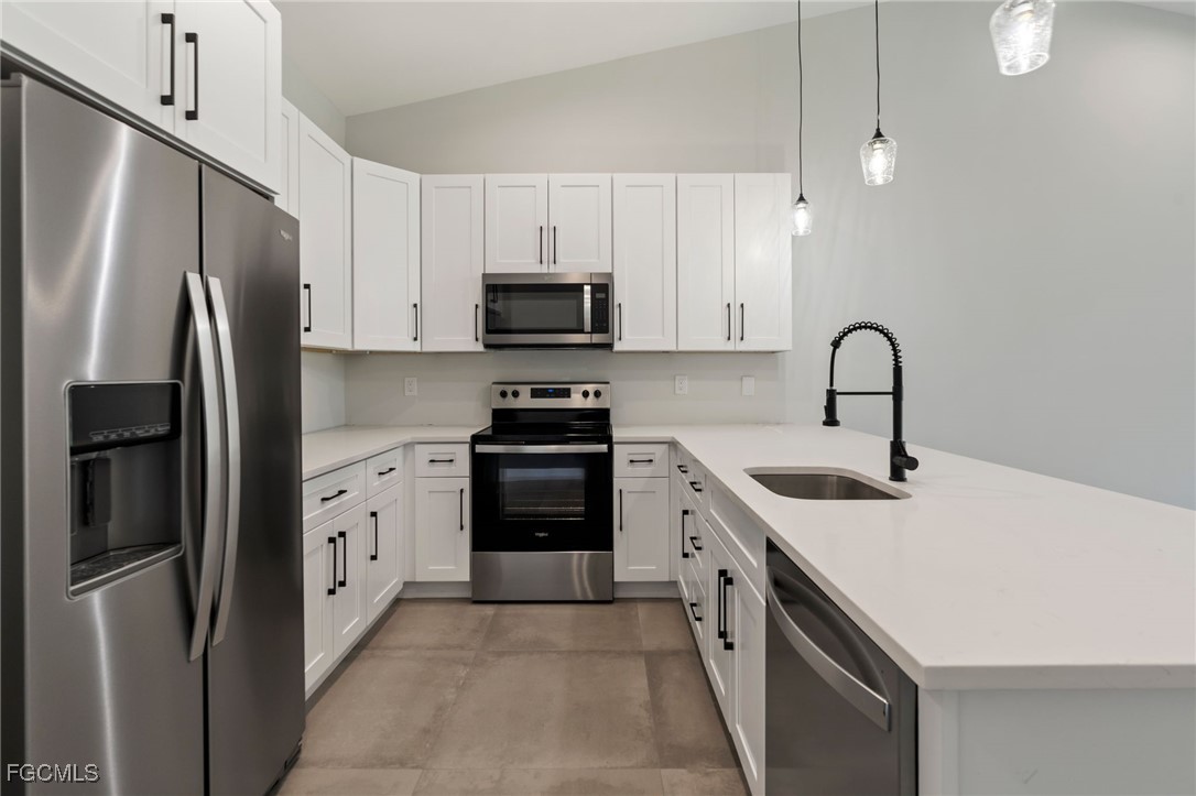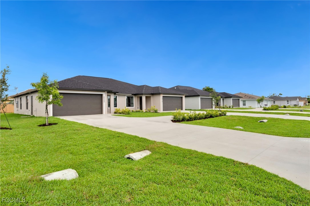 Outstanding investment opportunity with this newer-construction duplex built in 2023, ideally located near downtown Cape Coral with convenient access to shopping, dining, entertainment, and major roadways. This well-designed property offers two spacious units, each featuring 3 bedrooms plus a den and 2 full bathrooms, providing versatile layouts that appeal to a wide range of tenants. Both units boast durable tile flooring throughout, enhancing durability, low maintenance, and modern appeal. The open-concept floor plans are complemented by contemporary kitchens with large peninsulas, ample cabinetry, and modern fixtures, perfect for everyday living and entertaining. The bathrooms are highlighted by designer tile work, including stylish walk-in showers and quality finishes that elevate the overall aesthetic. Large windows allow for abundant natural light, while clean lines and neutral tones create a bright, inviting atmosphere. This duplex is fully occupied with tenants in place through October 2026, offering immediate and stable rental income. Built to current standards, the property benefits from modern construction, efficient layouts, and reduced maintenance compared to older inventory. With its prime location near downtown Cape Coral, modern finishes, and long-term tenants already secured, this turnkey duplex presents a compelling opportunity for investors seeking steady cash flow and long-term value.