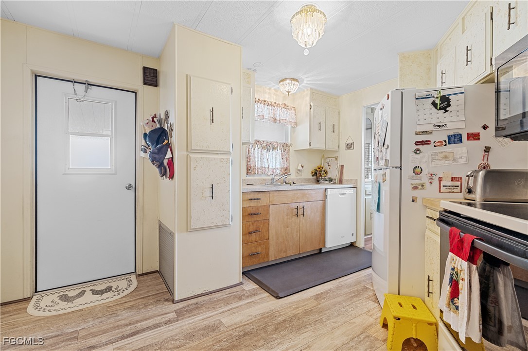 Inside, the home is spotless, bright, and truly move-in ready, featuring flooring that’s approximately 3 years old and most appliances replaced within the last few years, adding modern convenience and reliability. The layout is ideal for seasonal or full-time Florida living.
