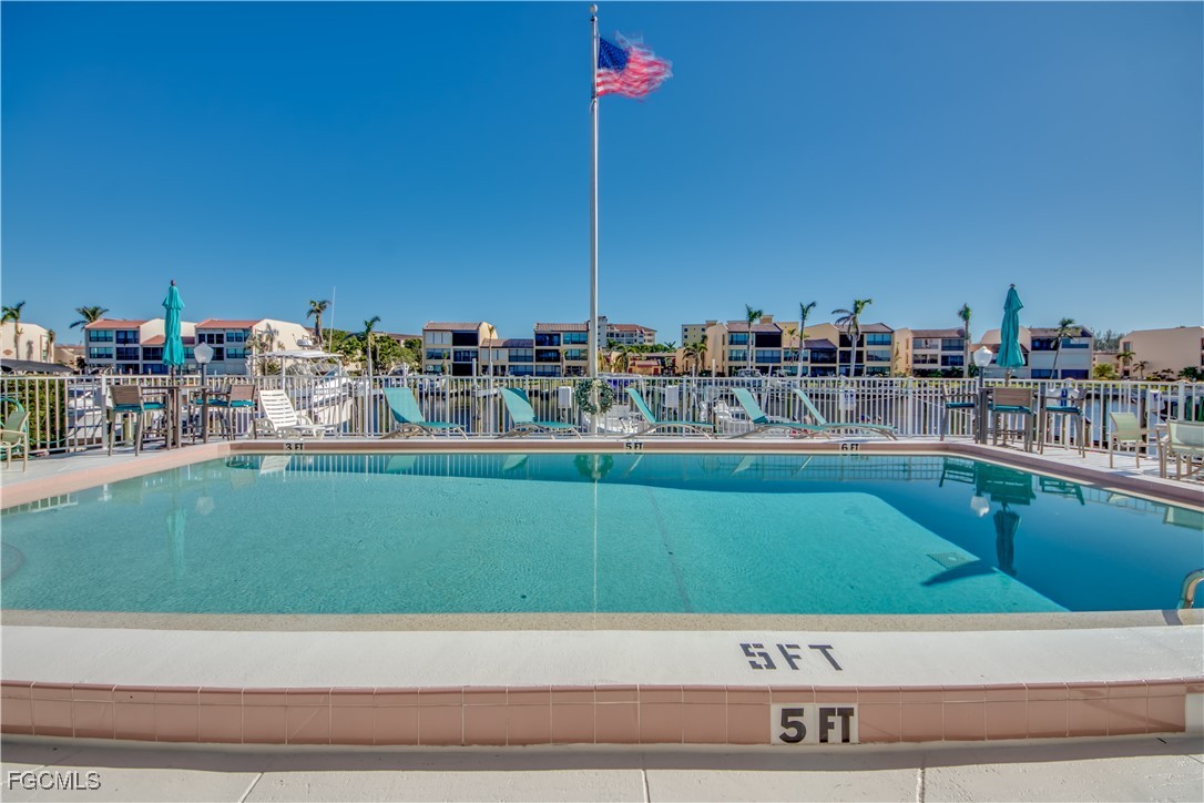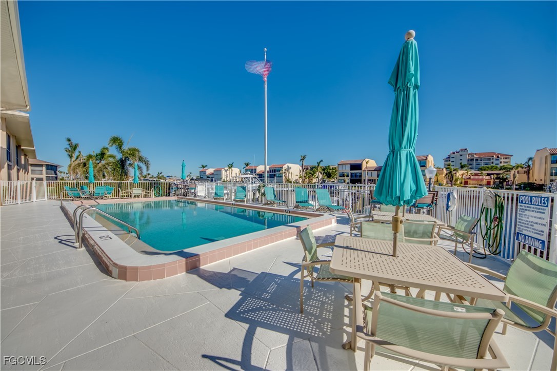 After a day of boating, tie up at your dock and head straight to the waterfront community pool to relax and watch the boats glide by. Additional highlights include excellent hurricane protection with electric shutters on the lanai and accordion shutters on the windows, covered parking, and a dedicated storage unit. This well-managed 55+ community offers a peaceful, resort-style setting.
