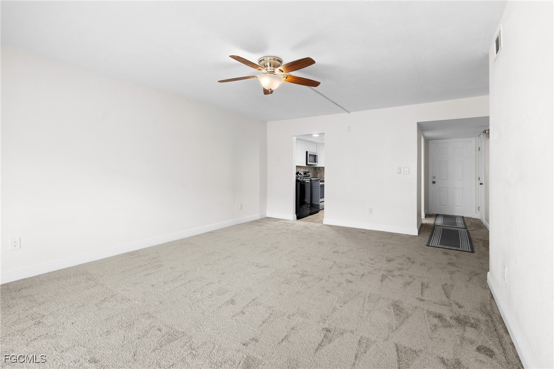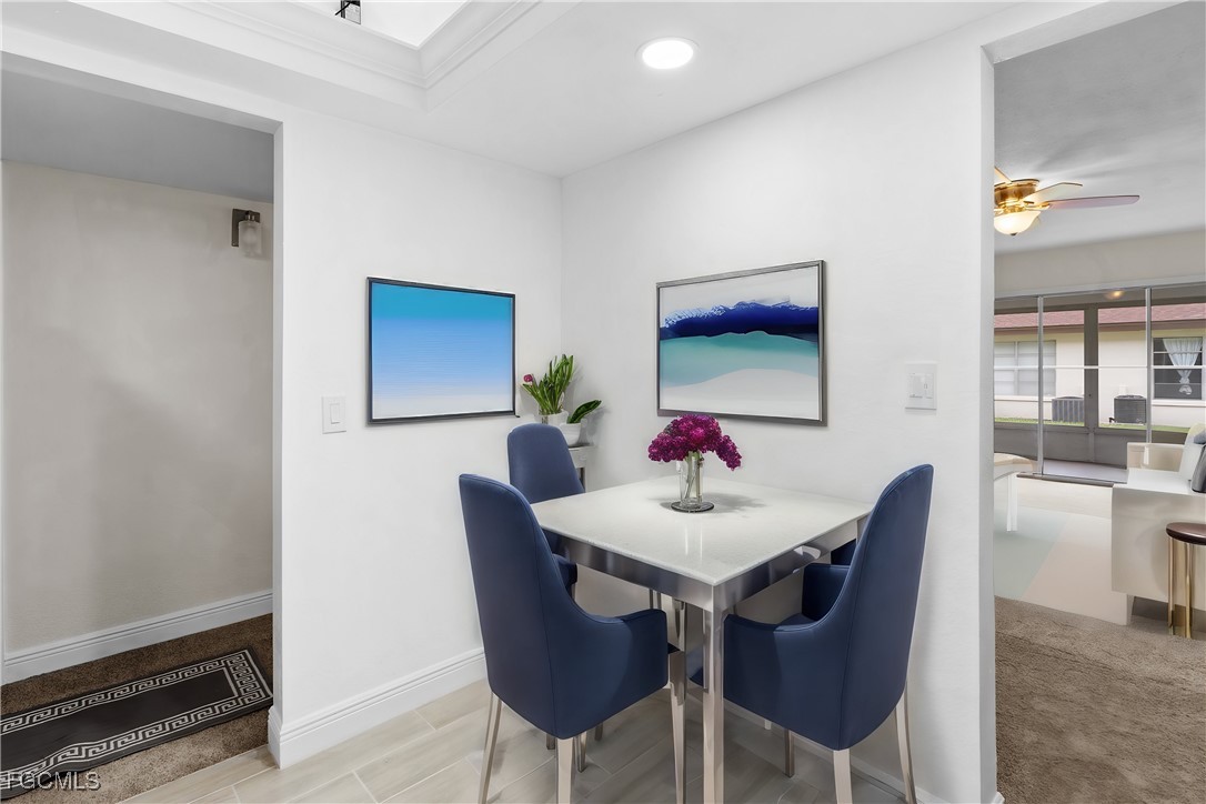 Nestled in the heart of downtown Cape Coral, this charming Two-Bedroom Condo is designed with simplicity and comfort. This ground-floor unit boasts fresh updates and features a ready-to-enjoy lifestyle the moment you walk through the door. Step inside to discover new flooring that offers a clean and modern look throughout the space. The living area, brightened by natural light from sliding glass doors, opens up to a covered, screened lanai. Imagine sipping your morning coffee in peace or entertaining friends in this delightful unit. The updated kitchen is equipped with new appliances and an In-house Washer & Dryer. The remodeled bathroom adds a touch of elegance and functionality, enhanced by a practical tankless water heater. This condo features two cozy bedrooms, providing a serene retreat for rest and relaxation. Located within walking distance or a short bike ride from the vibrant downtown area, you’re never far from the eclectic shops, delightful eateries, and leisure activities that our Cape Coral is famous for along Cape Coral Pkwy, and SE 47th Ter. And NOW with the new additions of The Cove at 47th and Bimini Square you've got options galore.