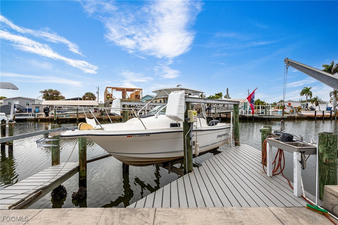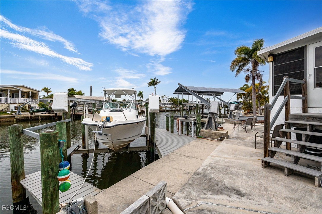 Island Paradise with Direct Gulf Access – No Bridges! Welcome to your slice of paradise in St. James City, where the island vibe meets waterfront luxury. This charming manufactured home offers direct Gulf access with no bridges, making it a boater’s dream! Launch your boat from your private dock and head straight to the open waters on the Gulf of America for world-class fishing, cruising, and island hopping. Easy boating access to Sanibel, Captiva, Fort Myers Beach, and Boca Grande! Enjoy the laid-back lifestyle: Golf cart to local restaurants, bars, and live music venues. Surrounded by tropical scenery and a friendly community, Perfect for boating enthusiasts and anglers alike. Live the ultimate waterfront lifestyle in St. James City with this turnkey furnished Palm Harbor Double Wide manufactured home (built in 1997) offering direct Gulf access with no bridges—a true boater’s dream! Property Highlights: Boating & Fishing: 7,000 lb boat lift with new motors and switches, 4,000 lb davits, syntactic boat dock, and concrete seawall with a spacious patio area. Includes a double-bowl stainless steel fish cleaning station with water and hose for your fresh catch. Outdoor Living: Covered walkway to the porch, landscaped stone yard (no grass to cut), and a 2.5-car wide driveway for all your toys. Attached utility room with workbench and shelving. Home Features: 2 bedrooms /2 full baths, 1,278 sq. ft. plus a 150 sq. ft. sunroom with a convertible sofa (third bed) no seeum screens, tinted vinyl windows and blinds, and an orbital fan. Cathedral ceilings throughout, central air replaced in 2024, and 3 ceiling fans. Kitchen with white cabinets, double bowl stainless steel sink, microwave, dishwasher and large double door fridge. Indoor laundry with shelving including an electric washer and dryer. Good sized master bedroom with large mirrored double door closet. Updated bathroom fixtures. Strapped and anchored to ground, 2x6 construction for durability Metal roof and vinyl siding for low maintenance. No smoking or pets. Owners are snowbirds so home was only used a few months each year! Enjoy the laid-back island vibe—boating, fishing, and dining just minutes away. Whether you’re looking for a seasonal retreat or a full-time residence, this home delivers everything you need for Florida waterfront living.