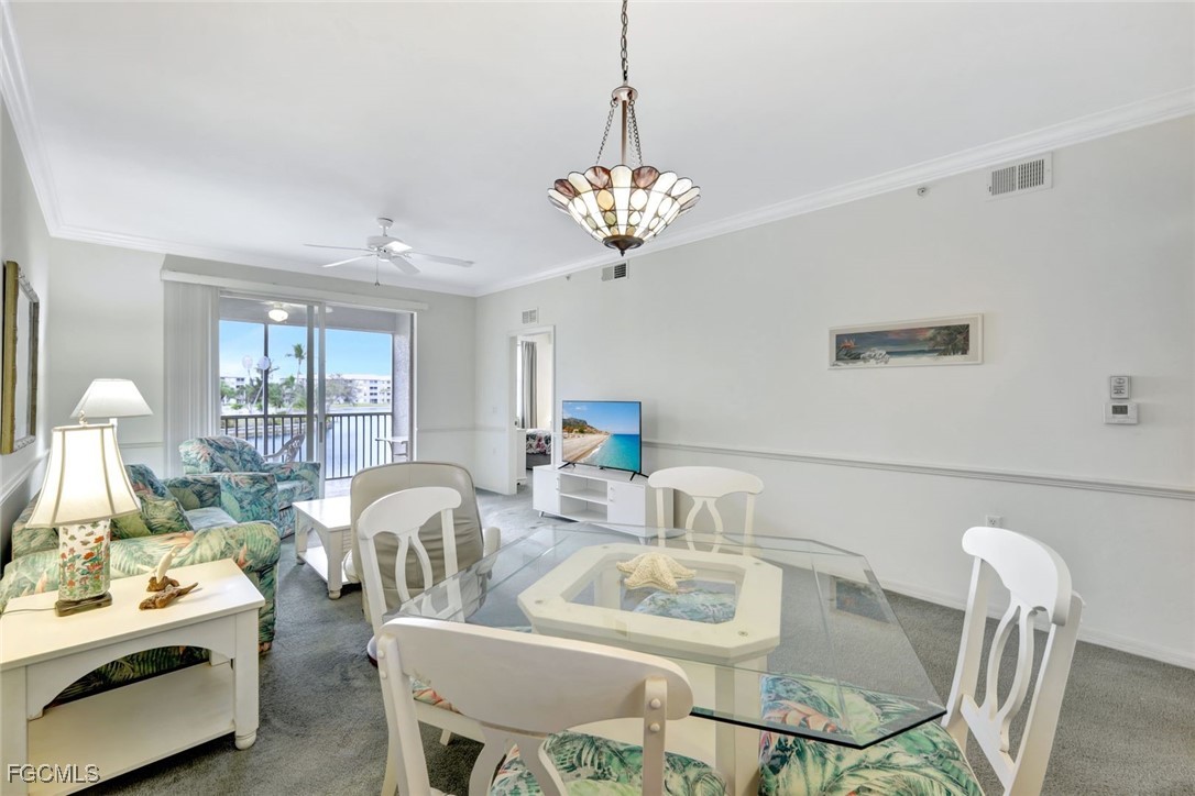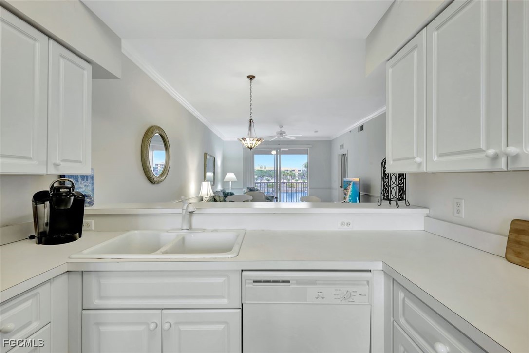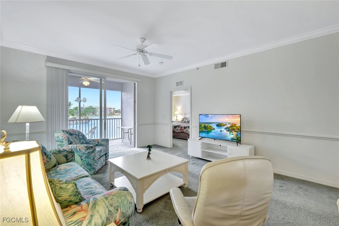 Enjoy SERENE, PANORAMIC VIEWS of the LARGE LAKE with LIGHTED WATER DISPLAYS from this 2nd Floor Ashbury model in Heritage Pointe, a lovely, gated community located in South Ft Myers, close to Sanibel & Captiva Islands and Fort Myers Beach. This split-bedroom condo, offered turnkey, consists of 2 bedrooms/2 bathrooms, large living and dining area, kitchen with breakfast area & pantry, plus a private screened lanai. The living areas, kitchen, and hallways feature crown molding and chair rails. The condo has 5 ceiling fans, a new hot water heater (2024), a newer HVAC system, and stainless-steel refrigerator. A deeded extra storage unit, conveniently located near the elevator, as well as covered parking are also included. Heritage Pointe’s comparatively low maintenance fee includes fiber optic-based high-definition TV & Internet service as well as water/sewer. Heritage Pointe is a financially sound, pet-friendly community located close to the beaches, near Wakahatchee Park & Recreation center with tennis & pickleball courts, Health Park Hospital & Medical complex, pharmacies & grocery stores, shopping, restaurants, and a variety of entertainment venues. Community amenities include a recently renovated clubhouse, resort-style heated pool & spa, fitness room, extensive library, paved walking path, plus a community gathering area featuring gas grills, and all-purpose area for bocce ball, cornhole, and putting practice. The community offers an extensive social calendar of activities & events. Don’t miss the opportunity to make this condo your second home, full-time residence or vacation rental property!