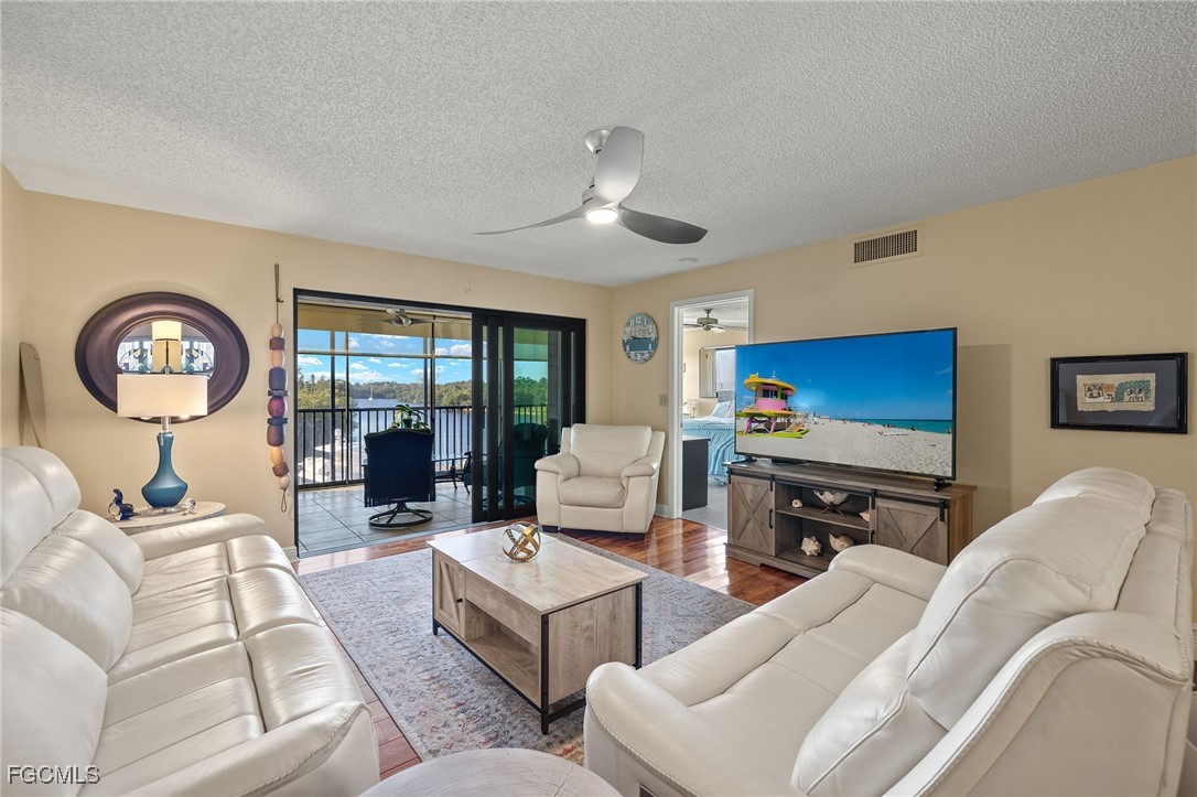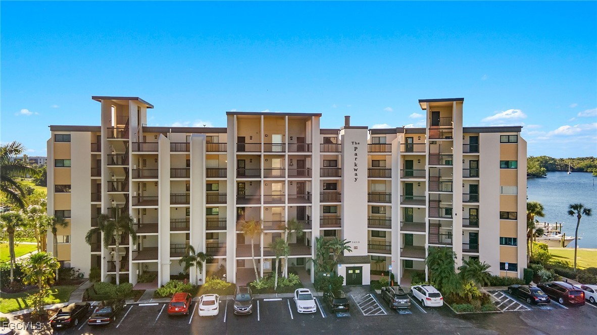 Stunning Water Views Await in This 3rd Floor End Unit Condo in The Parkway! Experience the perfect blend of luxury and convenience in this spacious open floor plan featuring beautiful hardwood flooring throughout. The modern kitchen boasts solid surface countertops and a breakfast bar, ideal for entertaining. Enjoy the updated guest bathroom and the versatility of a Murphy bed in the guest bedroom. This unit also includes a NEW full-size washer and dryer and a walk-in closet, providing ample storage space. The home has all NEW appliances, NEW A/C, and NEW water heater New low E impact sliders will soon enhance the views from both the master bedroom and family room, leading to your private lanai. Home is equipped with a glass door lanai extension to add extra living space to the home. This vibrant complex offers an array of amenities: unwind by the riverside heated pool, grill at the BBQ areas, or stroll to nearby waterfront restaurants. Planning a gathering? The party room is available for residents to reserve. For boating enthusiasts, boat slips are conveniently available for rent from the nearby marina (not affiliated with the complex). Embrace the lively atmosphere of the Downtown Fort Myers River District, where art and music festivals abound. The trolley stop right outside your door makes it easy to explore the area—just hop on for a quick ride across the bridge! This fantastic location is also close to shopping, dining, stunning beaches, and the airport. Don’t miss your chance to own this slice of paradise!