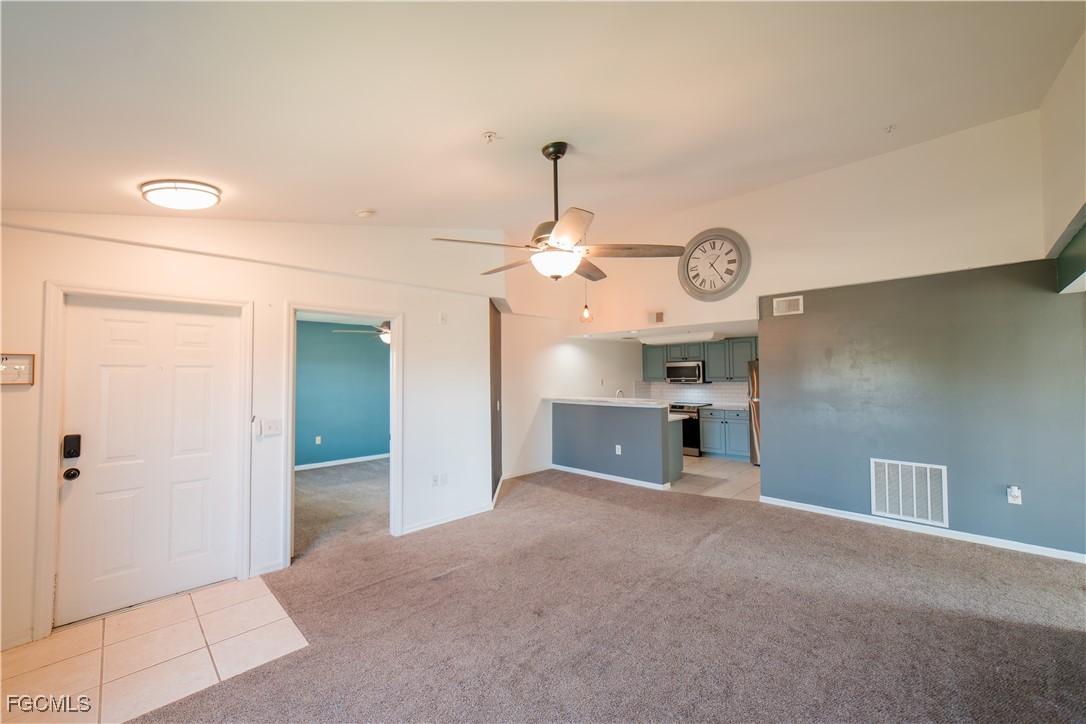 SPACIOUS TOP FLOOR CONDO WITH WATER VIEW, GREAT AMENITIES AND LOCATION! You will love this spacious, 3 bedroom 2 bath condo overlooking a community pond. Enjoy a view of the water from every main room of the condo. As you enter you will immediately appreciate the wide open floor plan showcasing tall vaulted ceilings and vibrant tasteful accent wall colors. The recently renovated kitchen boasts stainless steel appliances, quartz counter tops, a breakfast bar, and open viewing of the large great room. There is plenty of room for everyone in the 1,103 square foot condo with generously sized rooms. The oversized primary bedroom is situated on one side of the apartment providing privacy with a view of the water, a walk in closet and en-suite bath. The other 2 bedrooms are a nice size, have large closets and a view of the water. Resort-style community amenities include a community pool, fully equipped gym, basketball court, clubhouse, dog park, 2 playgrounds, and a picnic area with outdoor grills. There is a kayak and canoe launch with access out to the Caloosahatchee River. Enjoy direct access to the adjacent Four Mile Cove Ecological Preserve, exploring its 465 acres of wildlife, walking trails, boardwalks and piers. Located just minutes away from all the action, Coral Cove Condominium keeps you close to all the city's hot spots. This Community is conveniently located just minutes to world class beaches, fishing, golf, shopping, parks, restaurants, and plenty of entertainment. If you do need to venture out from all of this you are less than 1 mile to Del Prado Blvd or Veterans Parkway affording you quick access to everything. If you are looking for a great living or vacation space or an investment property, this is it. With so much to offer, you do not want to wait, schedule your showing today!