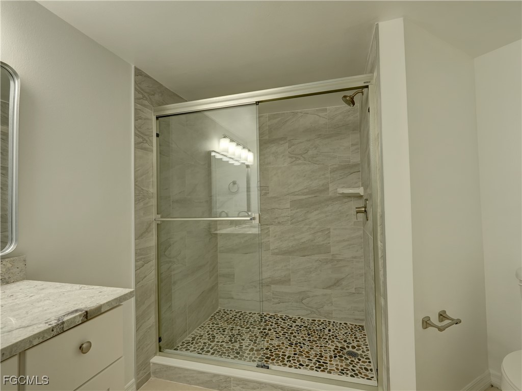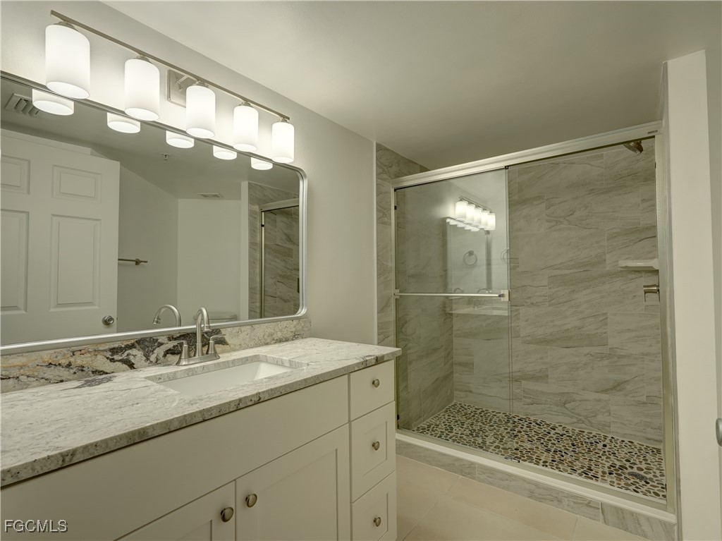 Welcome to the best-priced 3-bedroom, 2-bath condo in The Sanctuary at Imperial River! This first-floor end/corner unit offers easy living with no stairs to climb in a quiet, gated community perfectly located in the heart of Bonita Springs, Florida. The condo has been tastefully remodeled and features a stunning chef’s kitchen with brand-new stainless steel appliances, new cabinetry, granite countertops with backsplash. Both bathrooms have been fully updated, and the home boasts tile flooring throughout for a clean, modern look. Your laundry room comes with washer and dryer, for added convenience. Enjoy Southwest Florida living on your private screened lanai, ideal for relaxing year-round. The unit includes two assigned parking spaces, and there is also some guest parking around. The building tile roof was replaced in 2020. Community amenities include a resort-style pool and spa, BBQ/picnic area, fitness room, tennis/pickeball court. Located just six minutes from Barefoot Beach and Bonita Beach, this condo sits directly on Tamiami Trail, just north of Bonita Beach Boulevard—placing you close to everything. Fresh Market, Starbucks, Publix Supermarket, top-rated restaurants, and endless shopping are all just minutes away. Whether you’re searching for a full-time residence, vacation getaway, or an excellent investment opportunity, this centrally located condo truly offers the best of both worlds. Don’t miss your chance to own this slice of paradise—schedule your showing today!