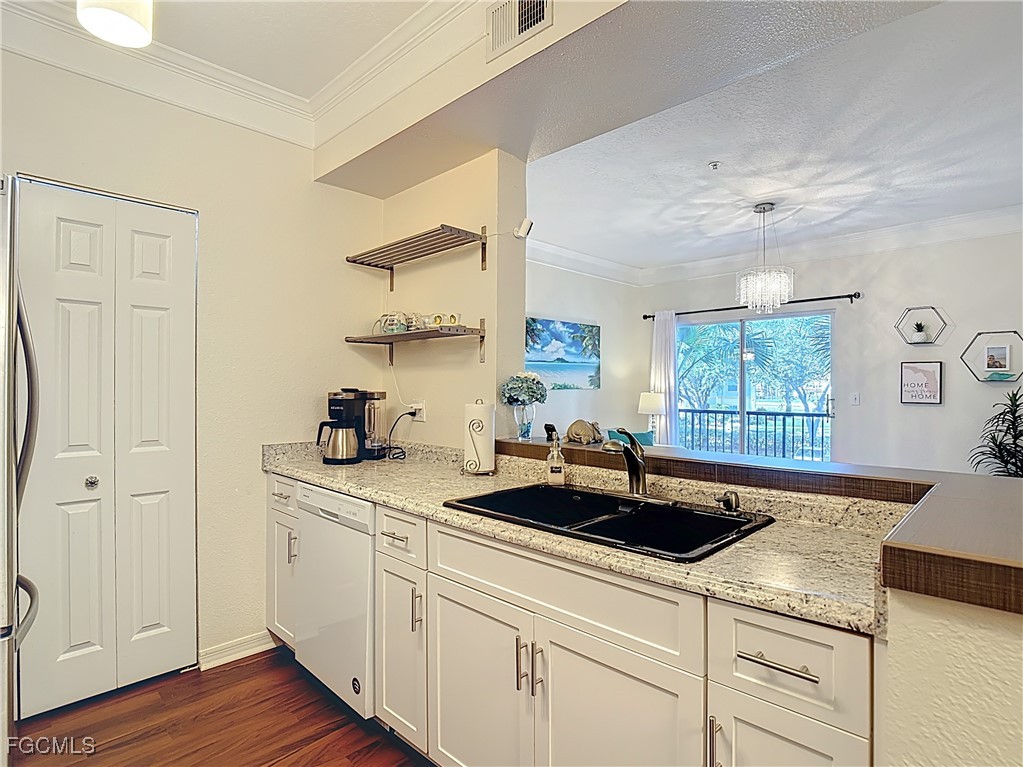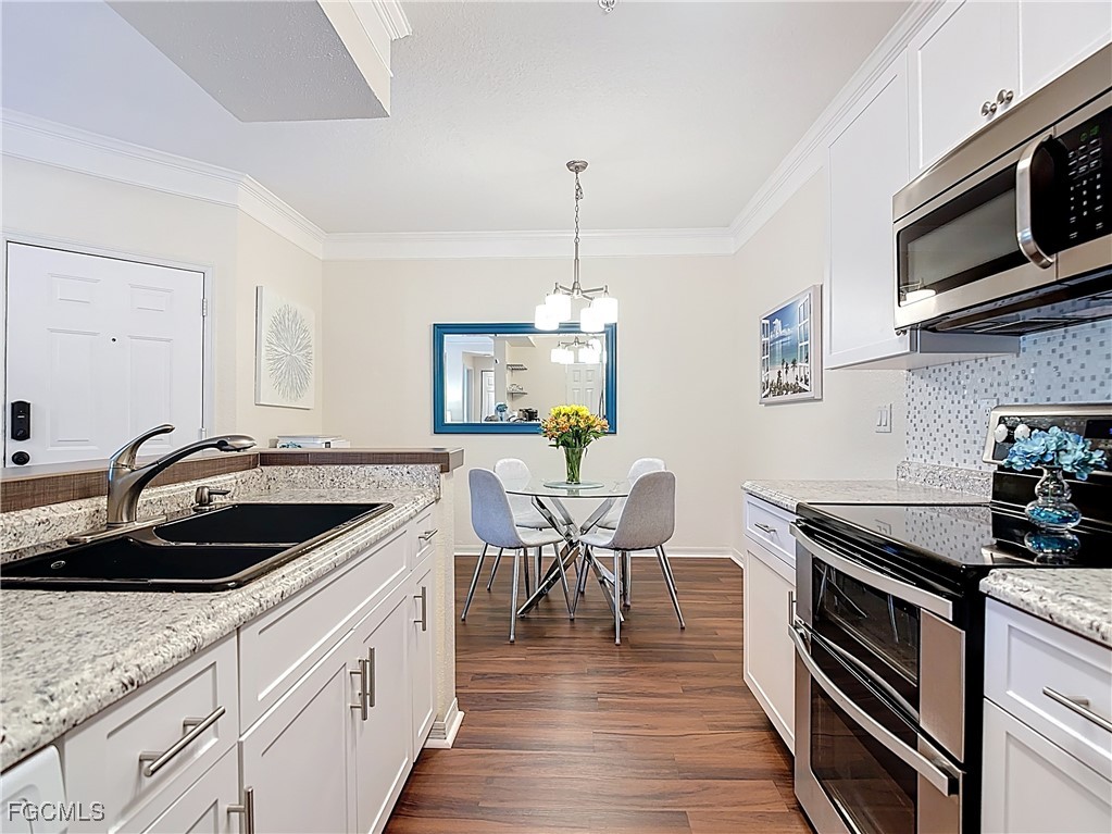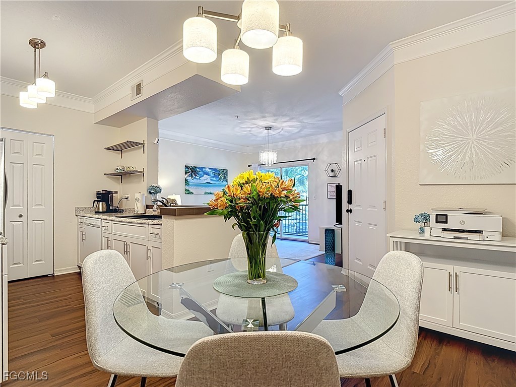 Welcome to Royal Greens at Gateway. Come explore this beautifully maintained gated community in the heart of Fort Myers. This 2nd floor 1 bedroom, 1 bath unit is light and bright featuring an open concept floorplan with crown molding and brand new vinyl plank flooring through out the kitchen and living room. The unit offers a full size washer and dryer just outside the master bedroom, walk-in closet, kitchen pantry and extra storage on the balcony. The screened balcony is perfect for relaxing while overlooking the lake. Recent updates to include new kitchen cabinet doors and fronts, hot water heater, washer/dryer, garbage disposal, pleated shades, bedroom ceiling fan, bathtub/surround refinished, smart door lock and thermostat. Tile roof installed in 2024. The community is well managed with an onsite manager and offers wonderful amenities to include a sparkling swimming pool with sun area, fitness center, indoor basketball/pickleball court, clubhouse, pet park, courtyard, library/business center and theater room. Optional memberships including golf, tennis and social available at the Gateway Club. Fantastic location gets you to anything and everything in minutes... Shopping/Dining, JetBlue Park – home of the Red Sox spring training, Gulf Coast Town Center, RSW International Airport, Downtown Fort Myers, I-75, FL Gulf Coast University and only 20 minutes from the areas beautiful beaches. Comfort and convenience awaits. Whether looking for full-time residency or seasonal use you’ll be glad you became a part of the Royal Greens Gateway community.
