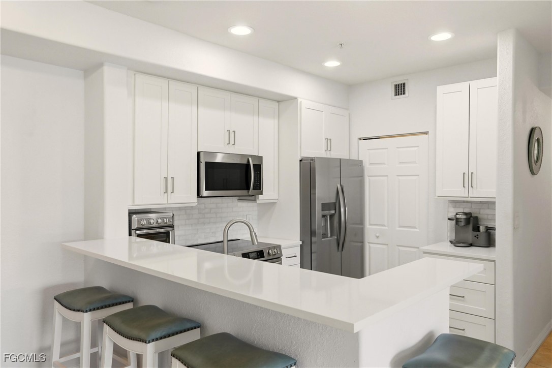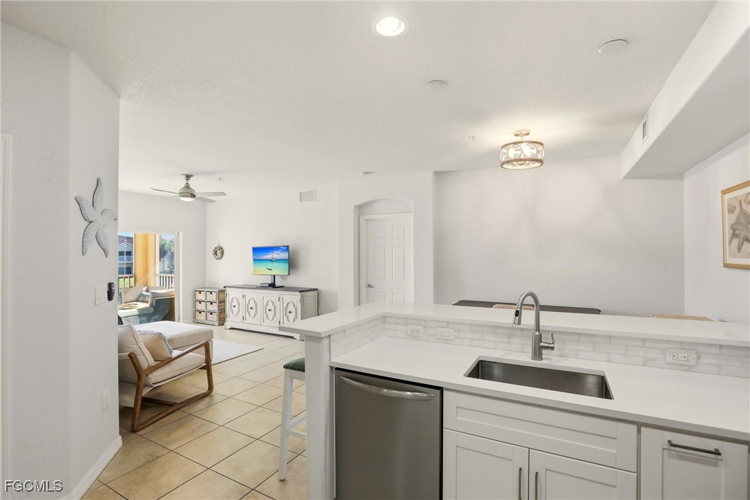 Experience this Beautiful 2 Bed, 2 Bath Lakefront Condo in the Centrally Located Gated Community of Bella Casa. This Home is Turnkey with Quality Furniture (even an Adjustable Mattress) and Ready for You to Move Right In! The Lanai was just Painted and has a Lovely View of the Lake and Waterfeature. The Kitchen was Completely Remodeled in 2023 with White Shaker Cabinets and White Quartz Countertops, Gorgeous Backsplash and Stainless Steel Appliances. Both Bathroom Vanities have been Replaced. AC was Replaced in 2024. There is a Separate Storage Unit Included. The Community has Wonderful Amenities such as a Community Pool, Spa, Exercise Room, Pickleball, Tennis, Walking Trails, Clubhouse and is Centrally Located to Wherever you Need to Be!