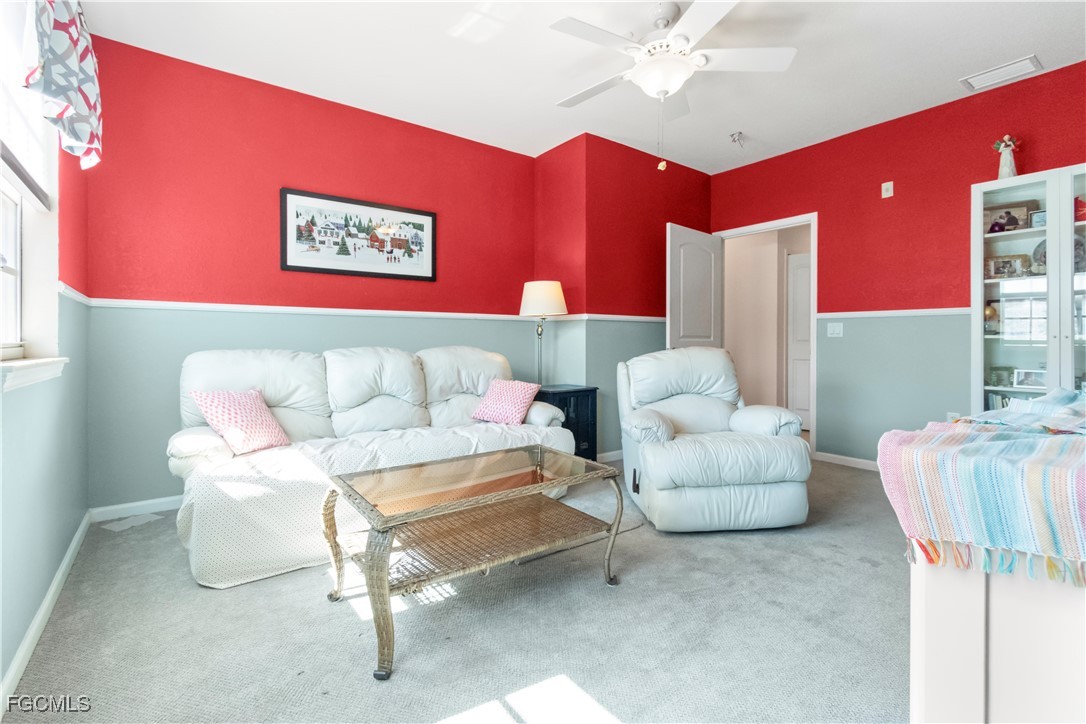 This move-in-ready second-floor condo in Fort Myers is ideally located near shopping, dining, and everyday conveniences. The open floor plan features vaulted ceilings, diagonal tile flooring, and sliding glass doors with plantation shutters leading to a screened balcony with custom blinds. Impact windows enhance comfort and efficiency. The kitchen offers granite countertops, maple cabinetry, pendant lighting, and a decorative backsplash. The primary suite includes new carpet, a walk-in closet, and an en-suite bath with a walk-in shower and double sinks. Two additional bedrooms also feature new carpet, with the oversized third bedroom currently used as a den, offering flexible living space. Roof (2024) and HVAC system (2023). HOA fees cover water, sewer, exterior maintenance, building insurance, and roof care. Located in the gated, pet-friendly Marbella community, residents enjoy resort-style amenities and convenient access to I-75, RSW Airport, Downtown Fort Myers, nature preserves, beaches, and spring training venues.