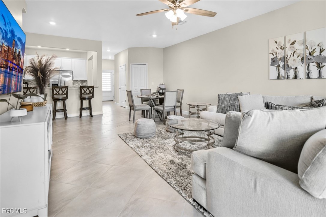 This remarkable townhouse, situated in the amenity-rich Timber Creek community, offers over 1942 square feet of bright and welcoming living space. It features 3 bedrooms, 2.5 bathrooms, and a one-car garage complemented by a stylish paver driveway, merging functionality with aesthetic charm. Upon entry, you will be welcomed by a warm and airy atmosphere. The open-concept main level is highlighted by custom lighting and contemporary tile flooring. The spacious kitchen is a culinary enthusiast's paradise, equipped with granite countertops, stainless steel appliances, elegant white shaker cabinets embellished with crown molding, and a convenient breakfast bar. On the upper level, the ample primary suite boasts an ensuite bathroom with dual vanities and a glass-enclosed shower, while all bedrooms are fitted with plush carpeting for enhanced comfort. Outdoor living is a delight on the screened lanai that overlooks a generous backyard. The assurance that the home is not located in a flood zone provides peace of mind. Timber Creek is a vibrant community that promotes a resort-style lifestyle with a wide array of activities suitable for all ages. Residents can enjoy multiple pools, a clubhouse, a fitness center, sports courts, pickleball, a putting green, a sauna, and even an on-site restaurant. Ideally located in Fort Myers, just off Daniels Parkway and Route 82, this home is mere minutes from JetBlue Park, RSW International Airport, The Forum, and a variety of shopping, dining, and entertainment options. Do not miss this opportunity to acquire a stunning home in one of Fort Myers' most desirable communities!