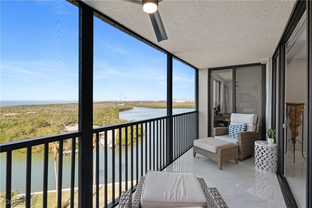 Serenity Condo | 9th-Floor Gulf & Bay View Condominium | Vanderbilt Surf Colony | North Naples This 9th-floor waterfront condominium at Vanderbilt Surf Colony offers panoramic views of the Gulf of Mexico and Vanderbilt Bay, with sightlines extending toward Sanibel Island. The residence features water views from every room and a private screened lanai overlooking both the Gulf and bay, providing an elevated coastal setting surrounded by natural preserves, boating activity, and wildlife. The open-concept living space includes a redesigned kitchen positioned to maximize water views, with waterfall granite countertops, full-size appliances, high-gloss porcelain flooring throughout, upgraded lighting, and modern fixtures. The living and dining areas open directly to a 24-foot screened lanai suitable for outdoor dining or relaxation. The great room includes a recessed 65-inch Smart TV, custom built-in wall feature, remote-controlled fireplace, and leather dual-reclining seating. The floor plan includes two primary suites located on opposite sides of the residence for privacy. Each suite offers Gulf views, direct lanai access through sliding glass doors, king beds, custom closets, and en-suite bathrooms with walk-in showers and upgraded finishes. Interior Highlights • Open-concept kitchen, dining, and living areas • Waterfall granite countertops and full-size appliances • Porcelain tile flooring throughout • 65-inch Smart TV and remote-controlled fireplace • Full-width screened lanai with Gulf and bay views • In-unit washer and dryer • Bedroom Configuration Two primary suites • King beds in both suites • En-suite bathrooms with walk-in showers • Lanai access from both bedrooms Community Amenities – Vanderbilt Surf Colony • Waterfront swimming pool • Kayak launch and fishing docks • Tennis, pickleball, and bocce courts • Gated community with secure building • Two elevators and assigned parking • Community social room Beach & Outdoor Amenities • Short walk to Vanderbilt Beach and Wiggins Pass • Beach chairs, umbrellas, towels, and beach cart provided • Two bicycles available for guest use • Popular nearby walking and biking paths Location Highlights • Convenient North Naples waterfront location • Walking distance to The Turtle Club, Baleen, and Buzz’s Lighthouse • Minutes to Mercato, Whole Foods, Trader Joe’s, Pavilion Shopping Center • Easy access to Waterside Shops, 5th Avenue South, and 3rd Street South • Approximately 20 miles to Southwest Florida International Airport (RSW) Inquire about our special shoulder month rates in the Fall and Spring to take advantage of seasonal pricing adjacent to peak months. This condominium is located in a secure, gated waterfront community offering a combination of coastal views, recreational amenities, and convenient access to North Naples dining, shopping, and beaches.