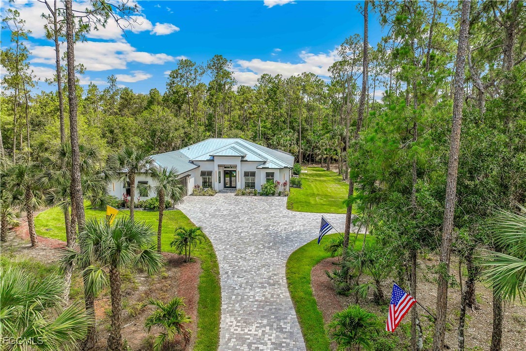Escape to your own private paradise nestled within the picturesque landscape of Golden Gate Estates. Situated on 2.73 sprawling acres of lush greenery, this custom-built 3 bedroom + flex room (den, small office, home gym), 3 bathroom pool home offers a rare opportunity to embrace the tranquility of rural living while enjoying the comforts of modern luxury. As you drive along the large custom pavered driveway, anticipation builds for the retreat that awaits. Once you step inside you will be captivated by the impeccable craftsmanship and attention to detail that define every corner of this remarkable home. Soaring ceilings with reverse soffits and cove lighting, whole house generator, 500 gallon propane tank, expansive impact windows and doors, metal roof, spray foam insulation, linear a/c vents. and thoughtfully curated finishes create an ambiance of refined charm and inviting warmth throughout. The heart of the home lies in the gourmet kitchen, where culinary dreams come to life amidst state-of-the-art appliances, custom cabinetry, and quartz countertops. Share meals with loved ones in the adjacent dining area or gather around the spacious great room for cozy evenings spent in good company. Retreat to the sumptuous master suite, a sanctuary of serenity boasting a luxurious ensuite bath, walk-in closet, dual shower and soaking tub. Additional bedrooms offer comfort and versatility, ideal for accommodating guests or creating a home office or fitness studio to suit your lifestyle. Outside, the possibilities are endless on your expansive acreage. Spend leisurely afternoons lounging by the custom oversized 15 X 35 shimmering pool, hosting gatherings on the covered patio with outdoor kitchen or exploring the lush grounds that surround you. With plenty of space for gardening or simply enjoying the peace and quiet of nature, this property invites you to embrace the joys of country living to the fullest. Located just moments from the vibrant attractions of Naples and pristine beaches of Southwest Florida, this custom home in Golden Gate Estates offers the perfect blend of seclusion and convenience. Whether you seek a tranquil retreat, or an active lifestyle surrounded by nature, seize the opportunity to make this secluded sanctuary your own. Don't miss your chance to experience the beauty and serenity of life on acreage in Golden Gate Estates.