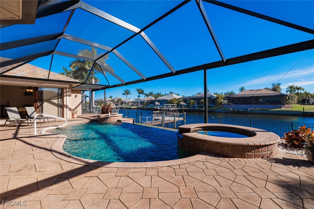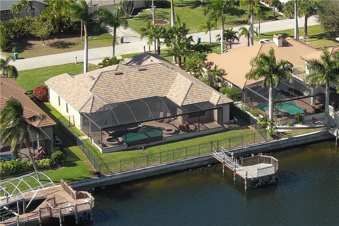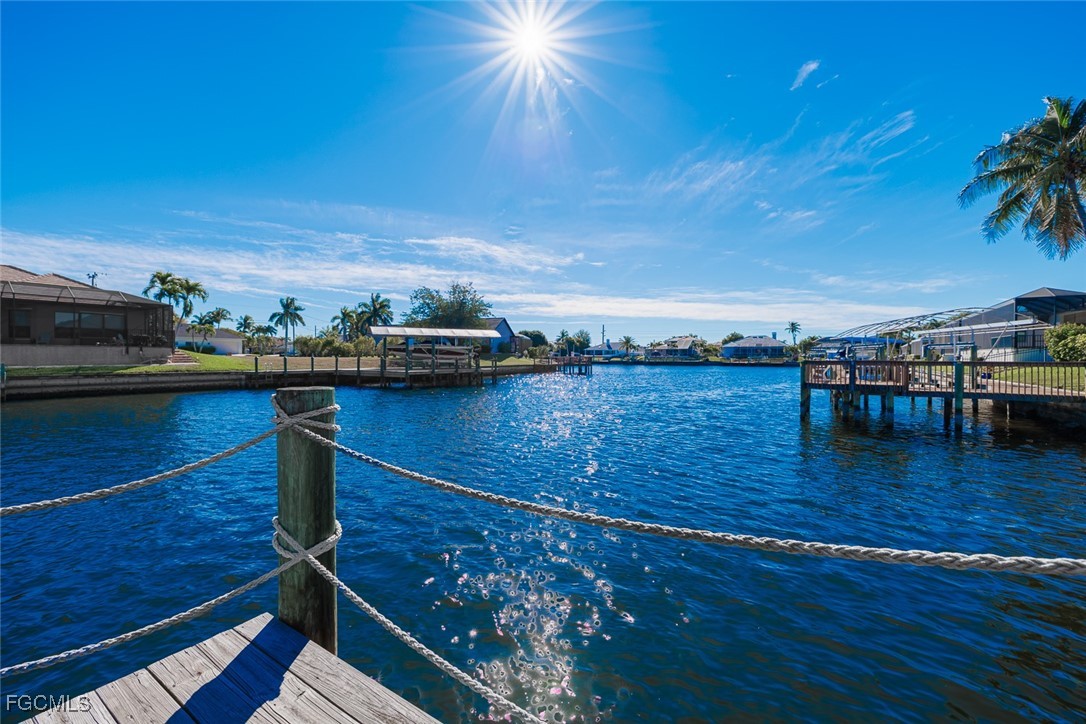 Located in a highly sought-after area of Southwest Cape Coral, this 2,500+ square foot Gulf access pool and spa home offers an exceptional combination of size, features, and location. Built in 2004 and situated on a 150-foot-wide canal with quick Gulf access, the outdoor living area checks all the boxes, featuring an infinity-edge pool with spa and fountain, expansive paver lanai, and a large covered entertaining space. The canal and dock setting provide wide water views and a true Florida waterfront lifestyle, while the fully fenced yard adds both privacy and functionality. The home features three bedrooms plus a large den (currently used as a fourth bedroom), 2.5 baths including a convenient pool bath off the family room, and multiple living spaces designed for comfortable everyday living or entertaining. Recent upgrades include a beautiful tile roof and Daiken A/C system, both approximately one year old, a new lanai in 2024, along with newer pool heater, pool pumps, and appliances offering peace of mind and reduced near-term expenses. Additional peace of mind comes from knowing this property has never flooded in any hurricane. Additional highlights include a paver driveway, generous interior layout, and a turnkey furnished sale, making the home rental-ready for buyers seeking a vacation rental or a ready-to-go seasonal residence. The location is equally compelling, with just one turn and a few blocks to popular dining such as The Lobster Lady, and only minutes to Cape Harbour, shopping, and entertainment. Notably, this property represents the lowest-priced Gulf access pool home over 2,500 square feet in the southernmost part of Cape Coral with a full 80 feet of water frontage. This combination of size, condition, features, and quick boating access makes it a rare opportunity in today’s market.