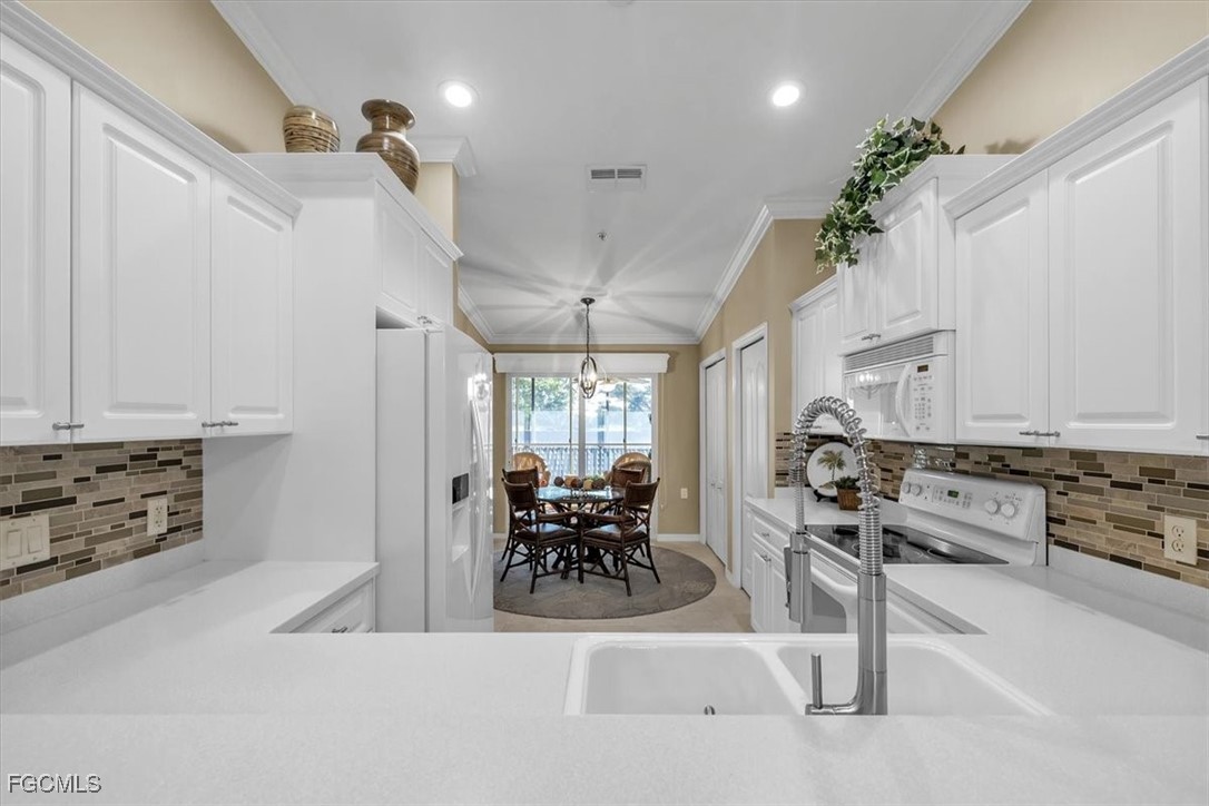 Welcome to your new home where you can enjoy golf and water views during the day and stunning sunsets in the evening. This property boasts enclosed front and back lanais, providing an additional 265 square feet of living space. The windows are all high-impact, ensuring durability and safety. The home comes beautifully furnished and is being sold Turnkey, making it move-in ready.