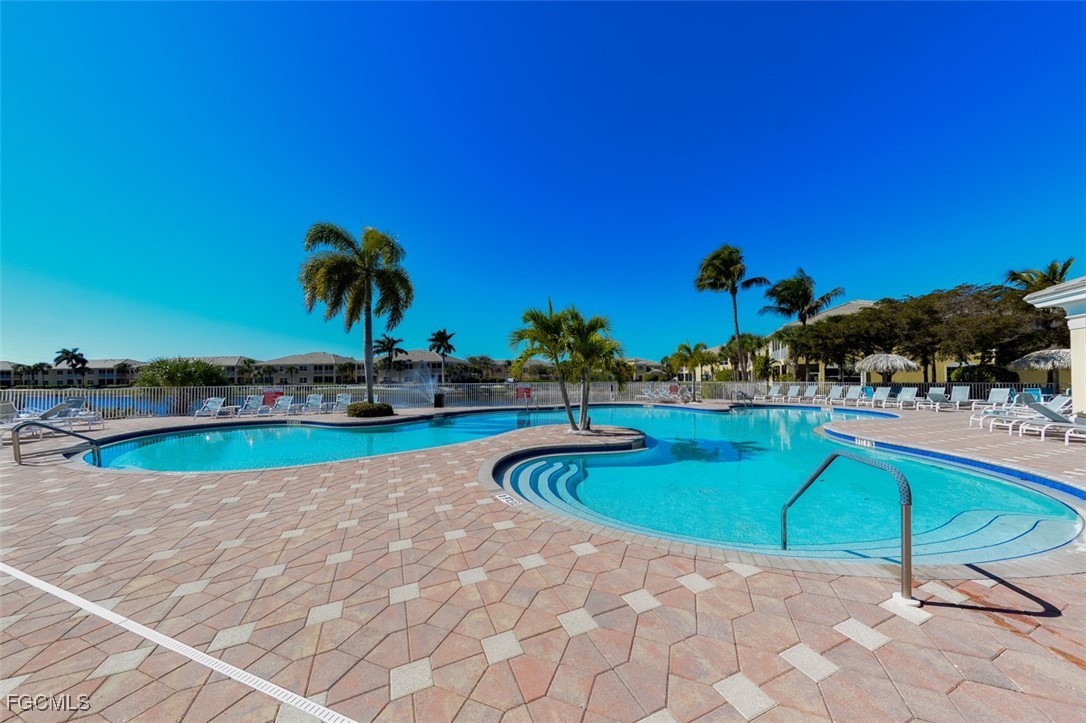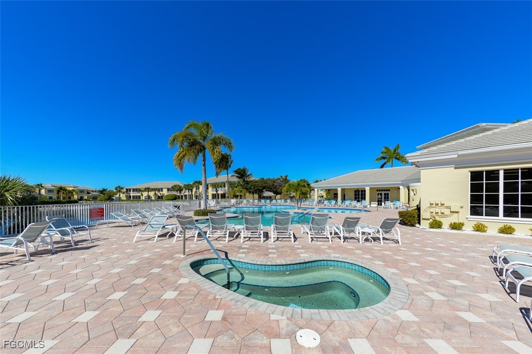 Lucaya offers an exceptional lifestyle, featuring a heated resort-style pool and spa, brick-paver sun deck with ample seating, covered gathering areas, and stunning lake and fountain views. The clubhouse includes a social room, catering kitchen, lending library, Wi-Fi, and a remodeled, well-equipped fitness center. A second, more intimate pool with grilling area adds even more flexibility for relaxing or entertaining.