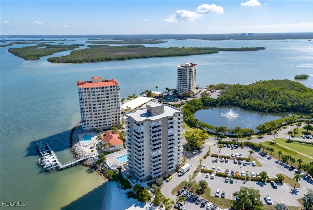 VIEWS!!! Wake up to dolphins and fall asleep watching spectacular sunsets. This 4th floor condo at Lovers Key Beach Club condo offers the most coveted stack in the building, delivering breathtaking panoramic views of both the Gulf and Estero Bay, while catching both sunrises and sunsets! Enter this turnkey furnished retreat and discover a thoughtfully designed 1 bed/1 bath oasis that captures the essence of island living. The open layout flows seamlessly onto a generous balcony where you can sip your morning coffee while watching marine life and boating enthusiasts. Rare in unit laundry, a tankless water heater for endless hot showers after beach days, and a recently updated a/c. The resort style amenities include lounging on the private beach beneath tiki huts, swimming in the heated pool, unwinding in the spa, or grilling fresh catch at the community barbecue area. Secure gated community, and the beloved Flippers waterfront restaurant is located just moments from your door. Prime location at the north end of Bonita Beach and south end of Fort Myers Beach. With weekly rental options available, this property presents an exceptional opportunity for investors or those seeking a flexible vacation lifestyle. Nearby Lovers Key State Park offer endless outdoor adventures. Close to shopping, restaurants and a quick drive to Bonita, Naples and RSW Airport. Schedule your private showing today.