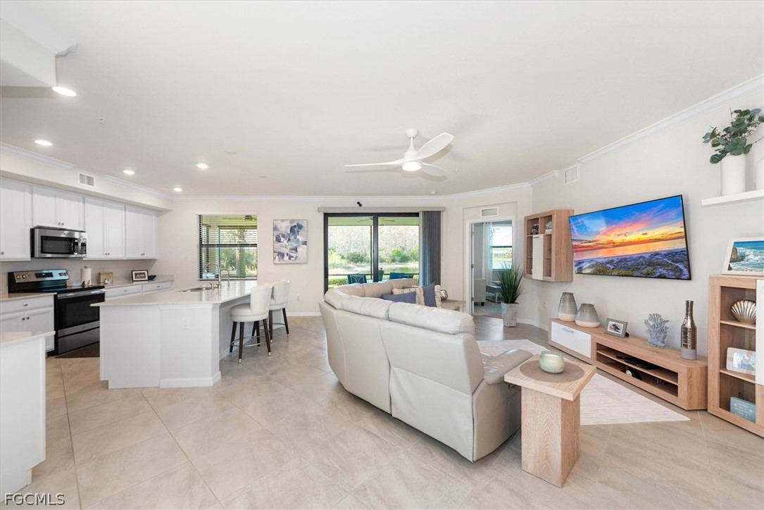 Enjoy private lake and preserve views from this updated ground level condo. NOT IN A FLOOD ZONE, IMPACT WINDOWS AND DOORS. FURNISHED AND TURNKEY! Built in 2020 by WCI, the property is bright, immaculate, modern and comfortably furnished by the original owner that lightly used the property in season. The home features 3 bedrooms with a split floor plan, great room, large screened lanai, laundry in residence and 2 car garage. The kitchen has white shaker cabinetry, countertop height island, quartz countertops, lots of cabinet and countertop space, and a pantry. You will enjoy the crown molding, impact window and doors, fire sprinklers, a reverse osmosis water filtration system, and large tile in main living areas. The Primary Suite includes room for a sitting area, 2 walk in closets, dual vanities with white cabinetry and a large glass enclosed shower. SMART Home - WIFI thermostats, WIFI front door, remote garage door opening and smart TVs. Great location within the community as it is close to the amenities center. Guest parking is directly across the street. Arborwood Preserve is a premiere gated resort style community offering an abundance of amenities including resort style pool (w/ lap lanes, Waterfall, and zero entrance pool access), state of the art fitness center, yoga studio, card/game room, theater, art studio, restaurant/bar, complimentary coffee lounge, fire pit, lighted bocce ball, pickleball & clay tennis courts. Centrally located, close to shopping, dining, 1-75, airport & the beaches. Don’t miss your chance to live the SWF lifestyle! NOT a 55+ community.