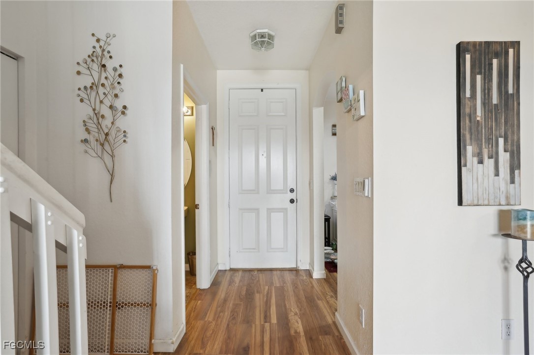 Welcome to Bella Vida! Live the resort lifestyle in this gated community, with palm trees sprouting on every corner, while enjoying the endless amenities. This 3-bedroom, 2-and-a-half-bathroom townhouse defines Florida living with vaulted ceilings and a spacious main floor greet you upon entering your new home. A view of the lake captures the sunrise from your screened lanai, a perfect place to enjoy your morning coffee or evening festivities. The kitchen is adorned with newer stainless-steel appliances and quartz counters. Tastefully crafted, the floor plan welcomes you to the second level unveiling the guest bedrooms and master suite. Ample amounts of storage and vaulted second floor ceilings set this townhouse apart. FLOOD INSURANCE IS NOT REQUIRED, SELLER IS OFFERING $3500 CONCESSION to assist with closing closts, potential flooring replacements or aid in buying down your rate.