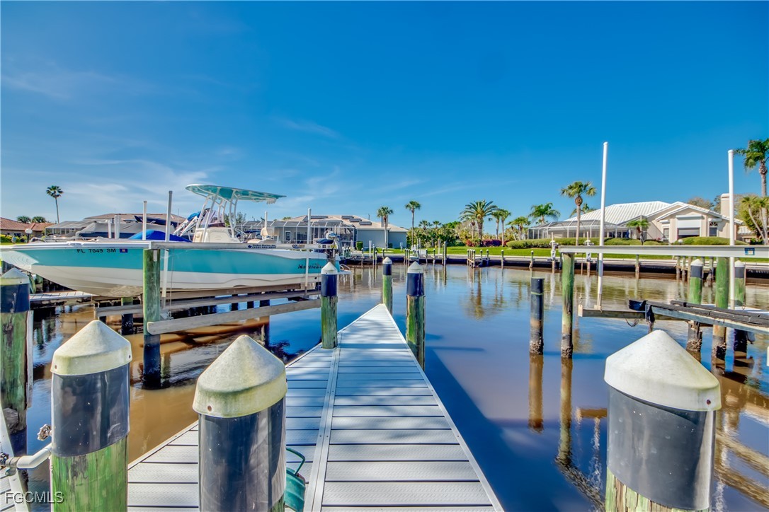 Walk right out your back door to your boat which is just steps away. This charming condo has been completely updated, new kitchen cabinets, Granite counter tops, stainless steel appliances, A/c, water heater, New tile flooring except for walkways. the large family/dining room overlooks yacht basin with screened lanai. Master suite is spacious with sliding glass to lanai. The large tiled lanai is closed in with plexiglas which gives the condo extra square footage that can be used year round, the unit has two storage units, covered parking. Enjoy convenient access to restaurants, shopping, downtown Ft. Myers. 10 minutes to 1-75, and 25 minutes to South West International Airport, + Punta Gorda Airport. Come and see for yourself.!