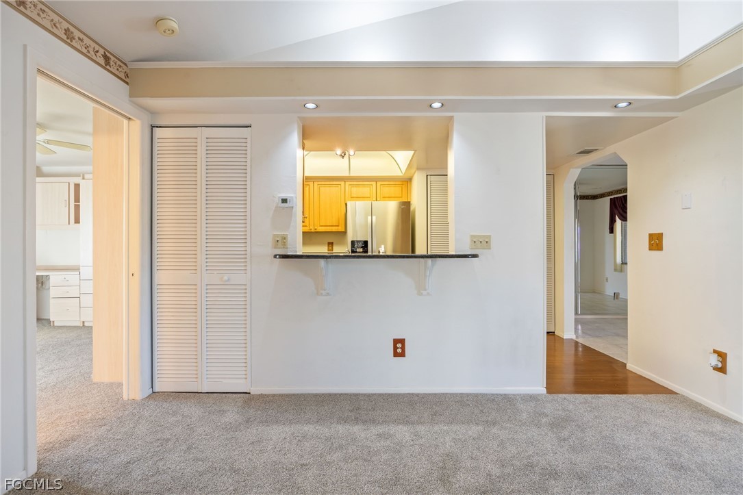 Cross Creek, a bundled golf community, is such a desirable place to reside in as it is right off Daniels in the center of EVERYTHING Ft. Myers has to offer! This 2 bedroom plus den, 2 bath condo is located on the third, top, floor, which will give you peace of mind if waters should ever rise AND gives you a spacious feel with vaulted ceilings. There are elevators, so no concerns over stairs here! Enjoy the water and golf course views from your lanai. This unit has new carpet throughout and both bedrooms feature walk-in closets as well as private bathrooms. An extra storage locker is located right across from the front door. Exceptional amenities include an onsite restaurant and lounge, executive golf course with a pro shop, tennis and pickleball courts, bocce ball and a heated swimming pool. There are walking trails and a full calendar of events for those seeking an active lifestyle! This unit is one of the best priced around. Purchase it and put your own touches on it. Are you a baseball fan? Located between the Minnesota Twins AND Boston Red Sox spring training sites, why not buy it and have a place to stay all spring?