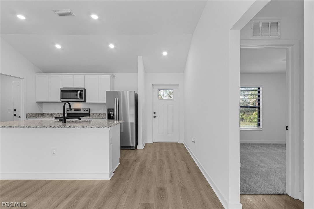 Home is under-construction and the expected completion date is May 29, 2026. The Delray floor plan by LGI Homes provides homeowners with exceptional value and practicality. This delightful 3-bedroom, 2-bathroom home greets you with a spacious, open-concept living area bathed in natural light, perfect for both entertaining and unwinding. Each home comes complete with a range of premium features, such as energy-efficient Whirlpool brand kitchen appliances, elegant granite countertops, stylish wood cabinetry, and the added peace of mind of hurricane impact windows.