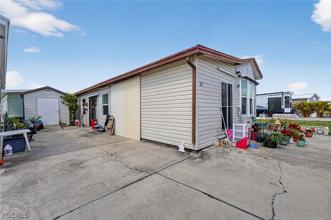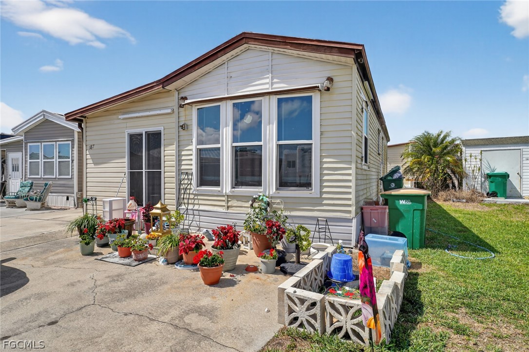 Welcome to 1475 Flamingo Dr, Lot 187, in the gated 55+ community of Holiday Travel Park in Englewood, FL. This 2-bed, 1-bath manufactured home sits on an owned lot — no land lease fees. Home includes a drywalled concrete extension, two sheds, and storm windows. HVAC and water heater are approx. 5 yrs old and the metal roof was fully repaired after a storm about 3 yrs ago. Updated bath with jetted tub, newer sink and toilet. Property is being sold as-is — kitchen and flooring ready for your touch. HOA is $144/mo covering water, sewer, trash, and grounds. Amenities include pool, clubhouse, shuffleboard, pickleball, and dock. Minutes from Englewood Beach and historic Dearborn St.