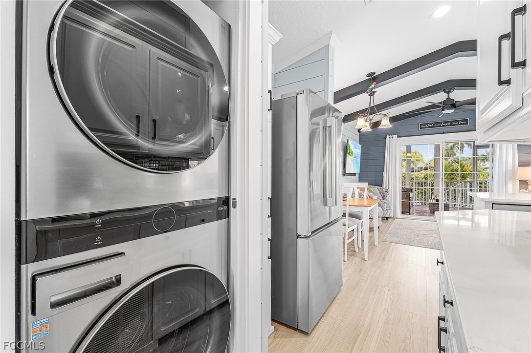 -There’s a full-size stackable LG washer/dryer for convenience.