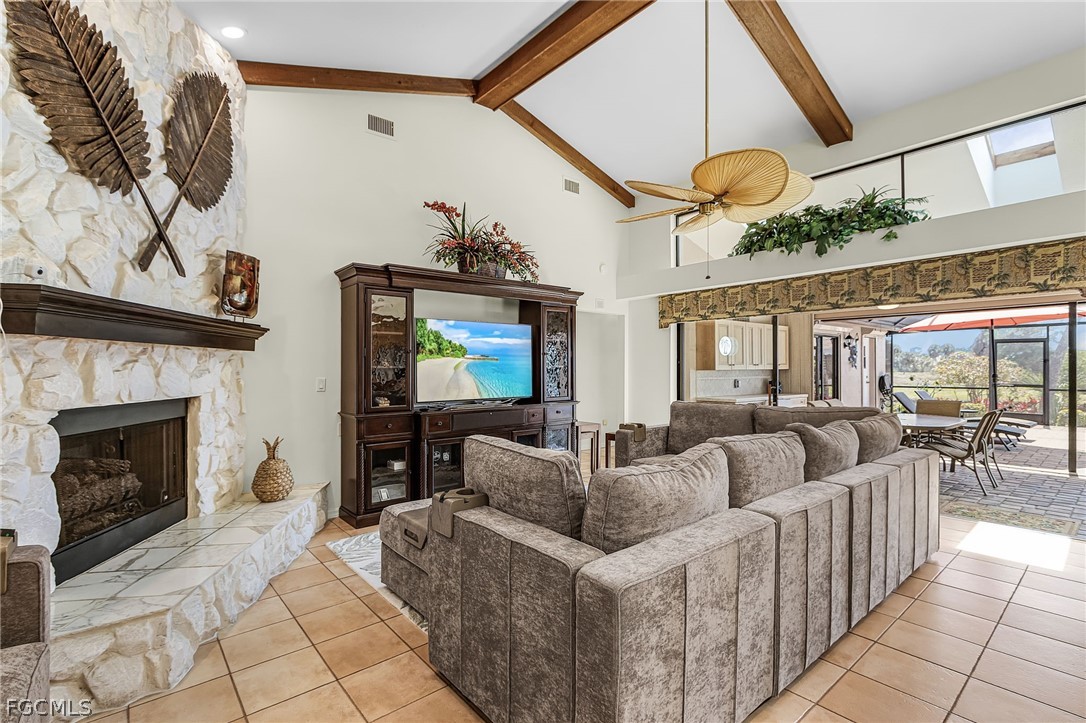 Vaulted ceilings with skylights fill the home with natural light, bringing both sunshine by day and stargazing by night. Enjoy tranquil pond views and lush tropical landscaping from nearly every room, along with a mature mango tree that enhances the island setting.