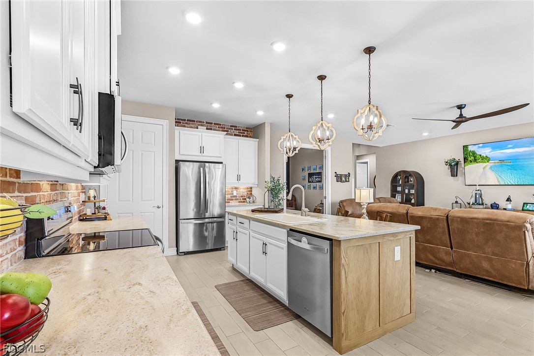 Come check out this BEAUTIFUL Southern Exposure newer construction home that has many well appointed upgraded features all throughout! This 2,415 sq ft- 4 Bedroom + Den, 3 Bath and 3 car garage home, carries a much larger feel when in person! The layout offers a tremendous amount of space in the living areas, bedrooms, walk in closets, and OVERSIZED Lanai. The sellers have added their own “tasteful touches” to every aspect of the home! From the color scheme inside and out, flooring, bathroom wall tile, Board and Batten added to the front entry and Pool bath, to the decorative window shutters and mature landscaping, your eyes will be in overload mode! Inside, the kitchen specs include but not limited to: stainless steel appliances, beautiful countertops, a custom Oak wood Island, soft closing cabinetry, custom lighting, and a very nice brick backsplash. Have I mentioned this home has plenty of space? Three of the four bedrooms have their own walk-in closets! This comfortable retreat has an open concept living room plus a Nook area, both of which provide beautiful views of the pool & lanai area. Storage can be a premium and often times not nearly enough. Not only is this a large 3 car garage home but the BONUS comes via the added built in’s for extra storage in the garage! Who would say no to that?! With having Southern rear exposure, your picturesque pool sunsets are what SWFL prime living is all about! You’ll be relaxing & enjoying that SWFL sun from your (27’ x 15’) Heated Pool with Bubblers and a tanning shelf built by Contemporary Pools! These custom pool builders didn’t just squeeze your pool into a small area- The sellers made sure there was more than enough entertaining space with an EXTRA LARGE 1,267 s.f screened in paver Lanai, providing you the room for just about anything and everyone!! All within a completely fenced in backyard for total privacy! With plenty of shopping & restaurants only minutes away- this conveniently located home checks off all the boxes! Don’t waste time, schedule your showing today! *All current assessments will be paid off in full at time of close. **Flood zone X - No flood insurance is required. Updated FEMA map & document specific to this property is provided in supplemental pages..
